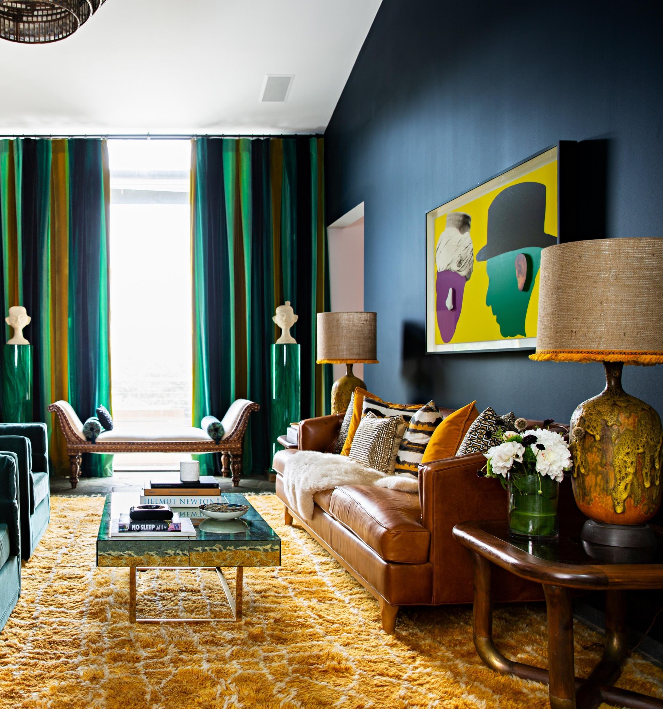 The orange, green and blue palette of the painting by Hassan Hajjaj (the Andy Warhol of Morocco, said Ms. Lau) recurs in tr trippy throw pillows from Silken Favours and the vintage Turkish rug laid over a larger jute rug. “A classic antique rug is a nice way to stabilize all the stuff that’s going on,” she added.