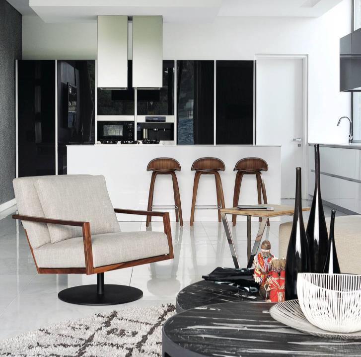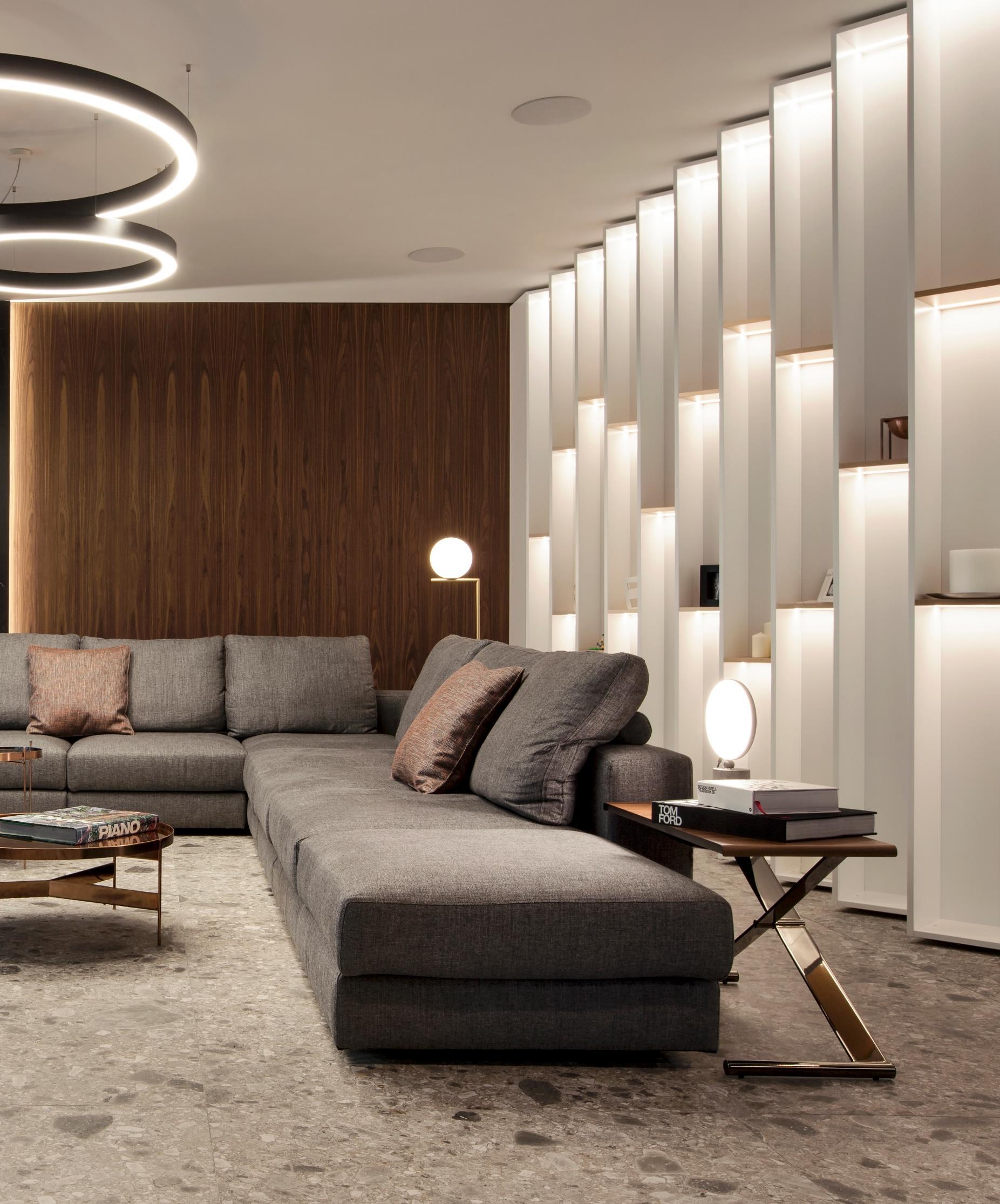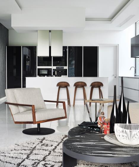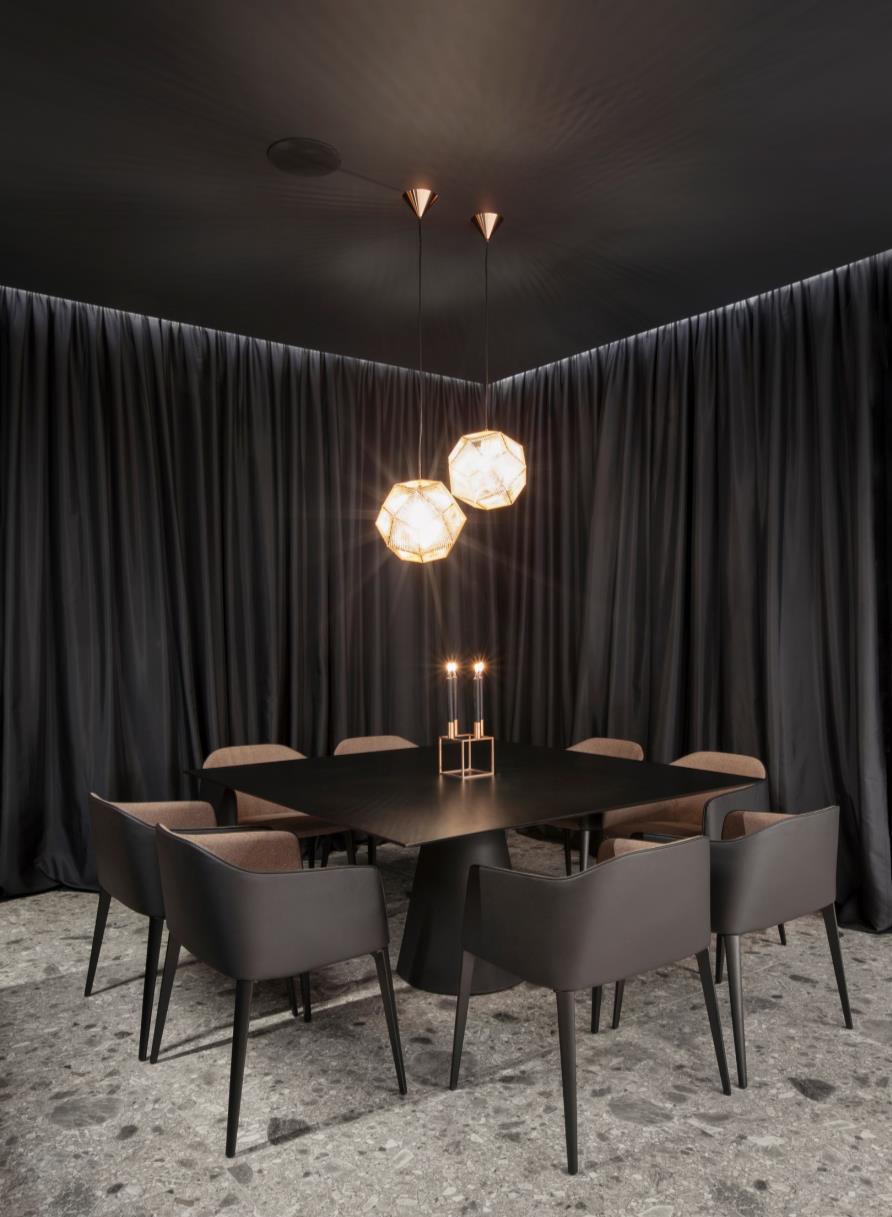 All the built-in furnishings were designed by noa* and customized according to the style and space, combined with a refined choice of furniture to complete the new design. A good example can be seen in the tables (from Billiani) of the lounge area that can change height: thanks to an upand-down mechanism of the support legs, they are transformed into tables where once can dine in comfort.