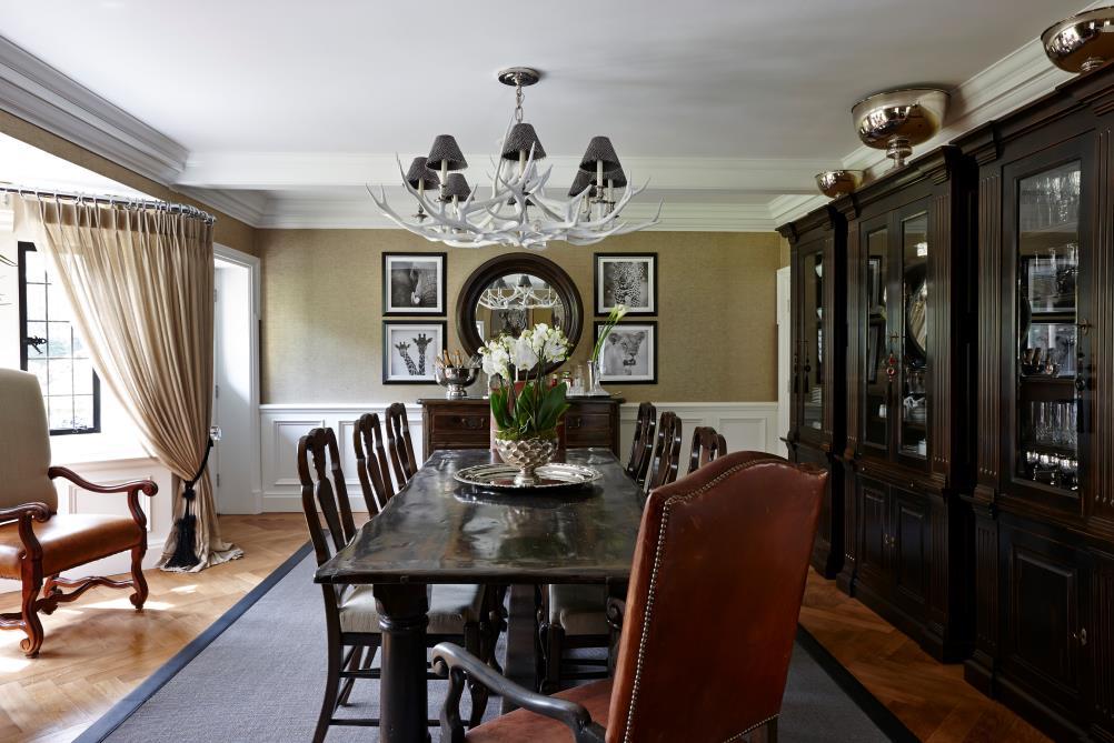 The new formal dining room is next door to the kitchen and during the summer time has an easy access to the large patio facing the old swimming pool.