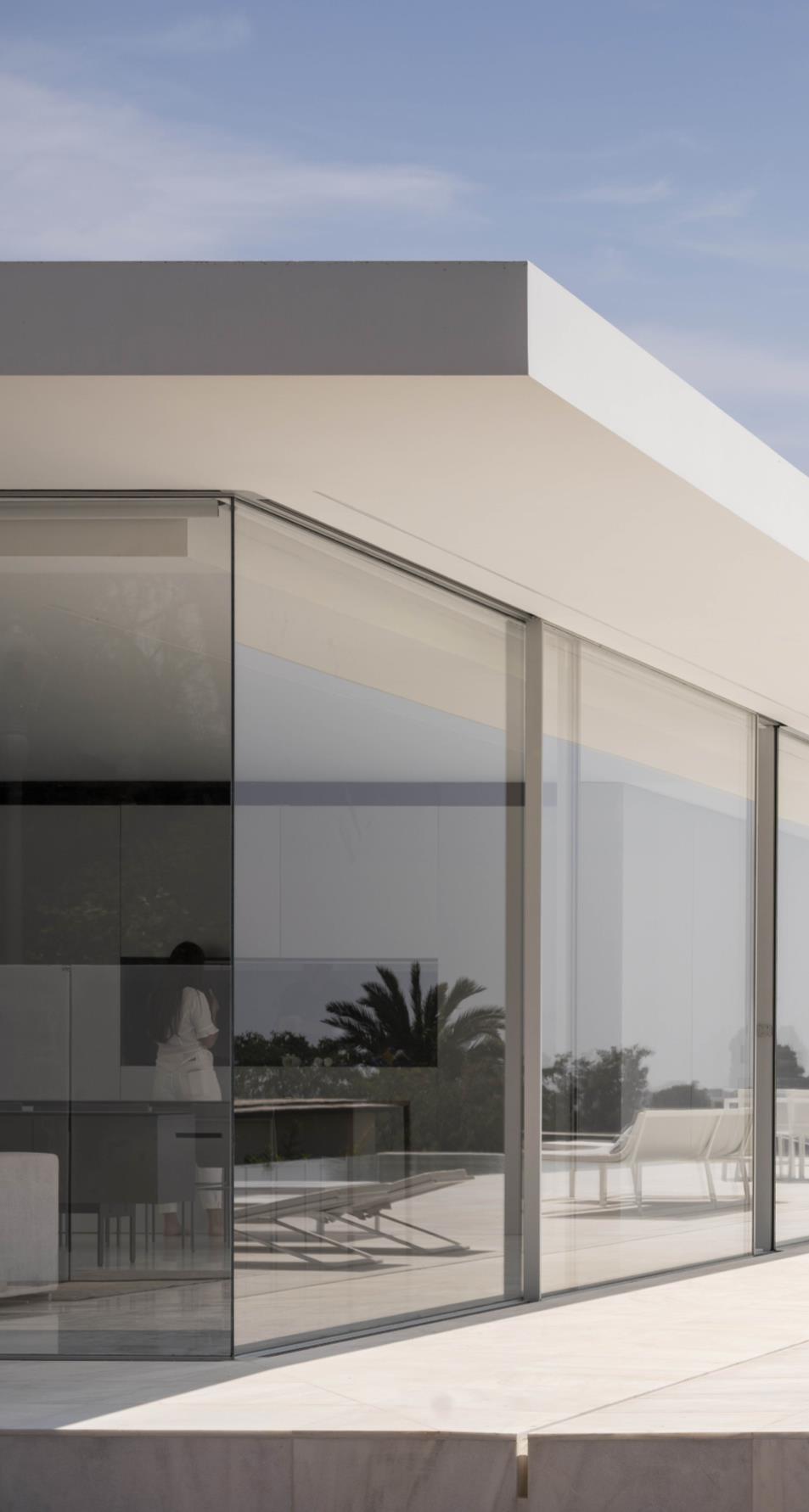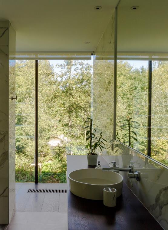The guiding design principle was to create a house that combines transparency with sustainability, forging a strong relationship between the villa and the landscape The harmony between landscape and interior, architecture and nature, was a key design determinant, particularly regarding sight lines, materials, colours, and lighting. The house is designed from inside out, creating uninterrupted views to the surrounding