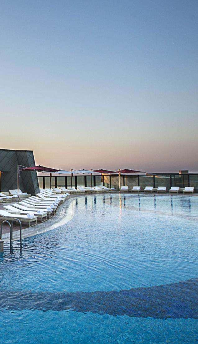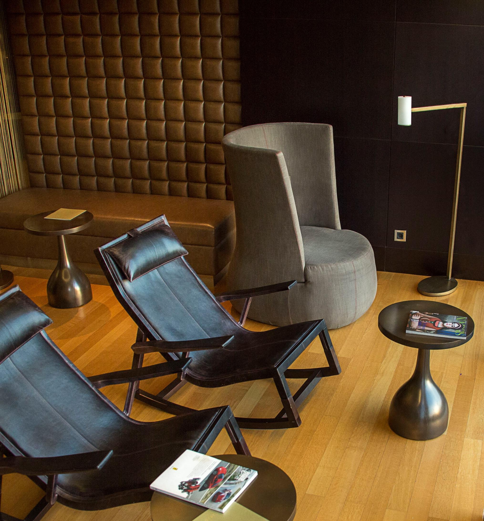 Above is a two-storey spa where the design team privileged warm amber tones, linked by a striking bronze glass staircase. HBA worked closely with SPA on all levels to find practical solutions to issues brought about by the unique design of the towers It had to be fabulous, very different, with a sense of place. Most of the spaces have soft curved walls in reference to the shape of the towers. The floor to ceiling and curved windows in particular elicited some inspired solutions to ensure guest privacy. Of equal importance for SPA was to create an ambiance which respected the many cultures of Azerbaijan and the property’s international guests, reflected in distinct male and female spaces