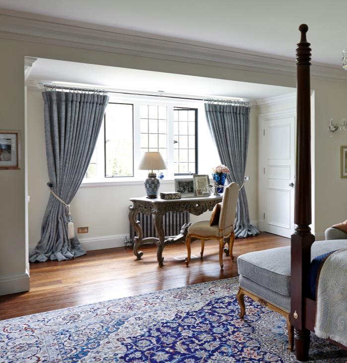 Maurizio Pellizzoni undertook the interior design of a large Edwardian property in Godalming, Surrey, UK, that dates back from 1901 and is rooted in the Arts & Crafts movement. To maximise the space, the original building has been extended to add a new doubleheight formal room, orangery, three extra bathrooms and a walk-in wardrobe for the master bedroom.