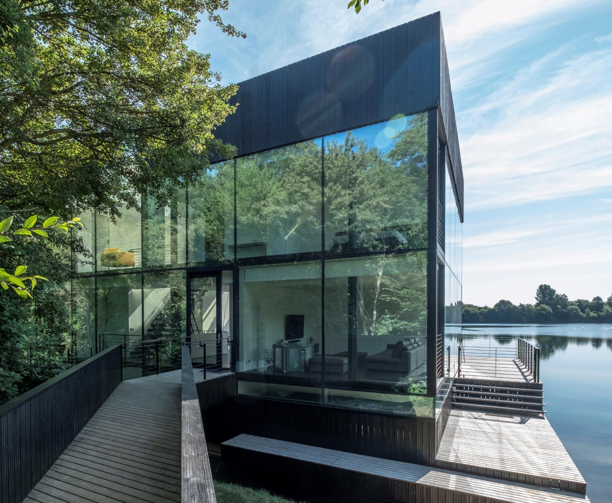 Mecanoo, The Dutch architectural firm, has completed the 600 m2 three-storey villa with one level below water and two large terraces in Lechlade, UK.