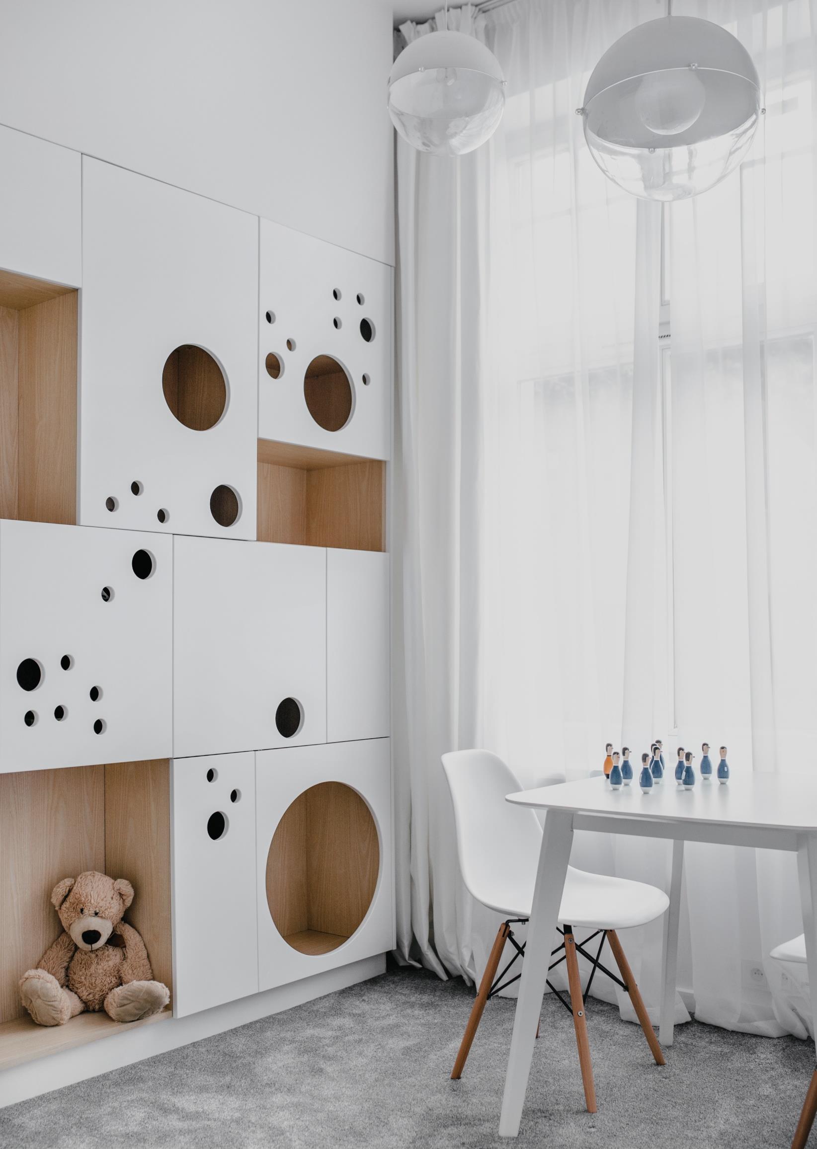 The children’s bedrooms purposefully distract from the interior concept of the rest of the house. “We wanted to bring the children to a different world - maybe Narnia or Wonderland - and have them to use their imagination…" The formula is: soft tones, delicately offered surprises and open spaces with extraordinary design objects with a souloffering delight and teaching art appreciation - Liana lamps by the Bouroullec brothers, Puppy from the Me too collection by Magis.