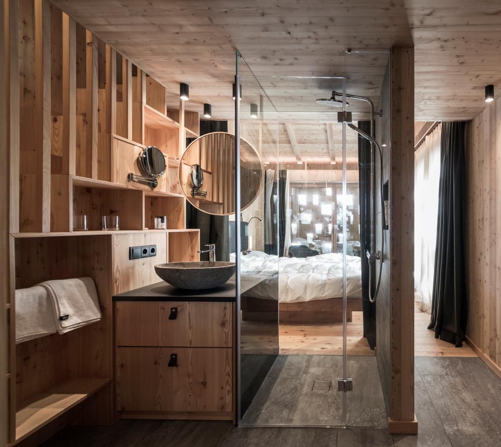 " In this project we have also tried to bring out that strong relationship between architecture and context , which characterizes all our works. We want to propose new models of life and hospitality that on the one hand recover traditional forms and materials, on the other hand express quality of design, high levels of comfort and sustainability. The alpine environment is a complex and fascinating system that must be understood and respected. We think it's important to think of new spaces and ways to inhibit it : environments on a human scale, comfortable, welcoming, but above all unique and authentic" – explains Architect Stefan Rier