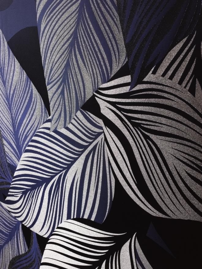 THE PALETTE OF INTENSE SHADES OF BLUE WITH A HINT OF WILD GREEN UP TO THE BLUE OIL IS INSPIRED BY THE ATMOSPHERE OF A JUNGLE LAGOON WITH ACCENTS FROM GOLD TO BRONZE