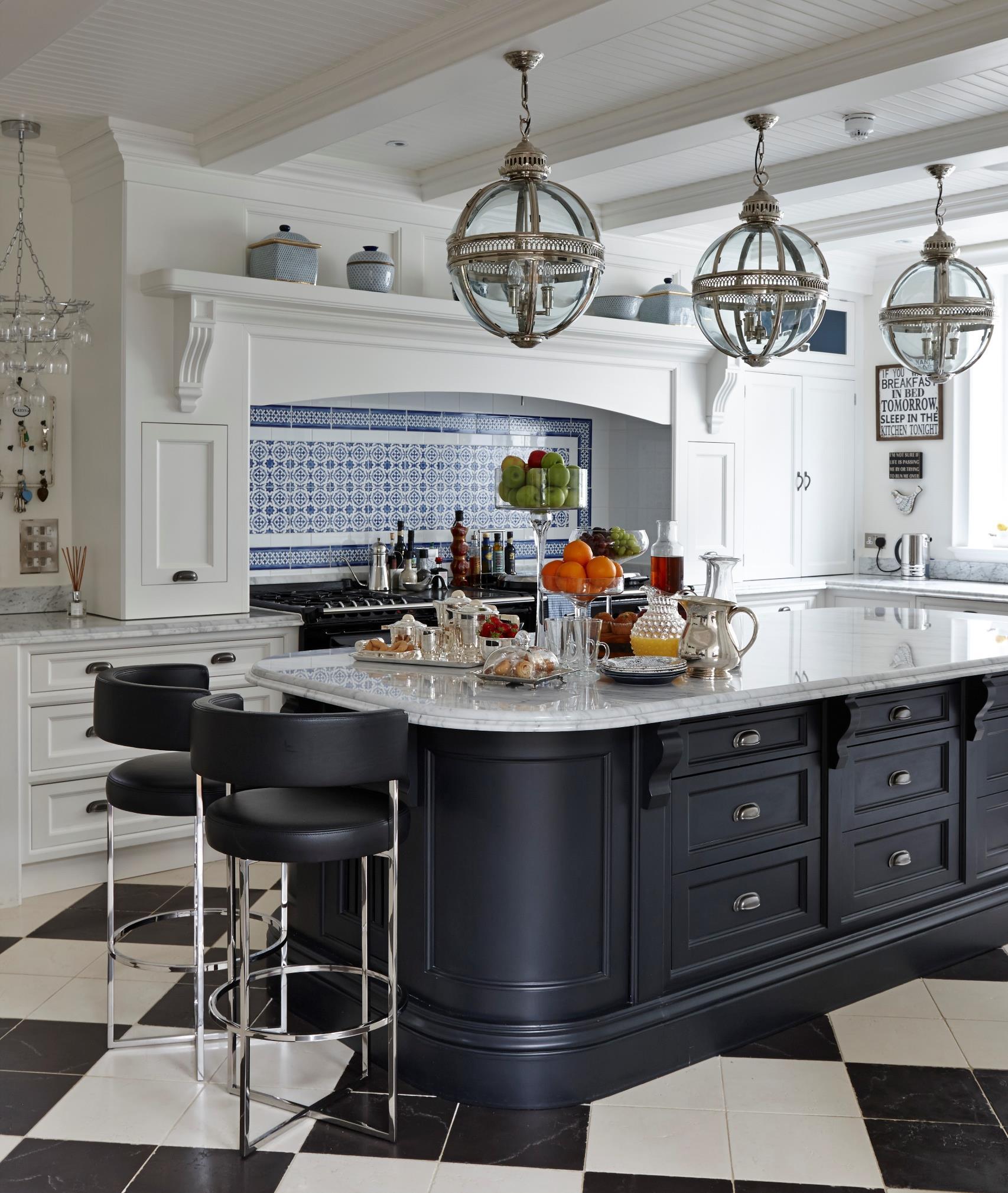The client was keen to incorporate existing pieces of furniture from various family trips abroad into the new design. These pieces were distributed amongst the rooms in the house, and used as the inspiration behind each room’s individual colour scheme and feel, creating an eclectic yet personal overall design aesthetic. Maurizio completely redesigned the kitchen alongside a local expert kitchen maker, sourcing the perfect finishing touches like the custom made Carrara worktop for the kitchen Particular attention was paid to such final details throughout the property in order to achieve a high-level of elegance and sophistication in the design, such as the beautifully crafted door handles by Charles Edwards. Ralph Lauren, de Le Cuona and Andrew Martin furniture and fabrics were also used throughout to create an air of luxurious refinement, while complementing the client’s existing pieces