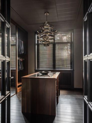 together. At first glance they have nothing in common, but all the spaces are united by the surfaces, shapes and materials which create the whole picture. As the styles and colours flow from one to the other new accents and moods emerge. Dark metal is the main decorative element (indeed it is used throughout the whole project).