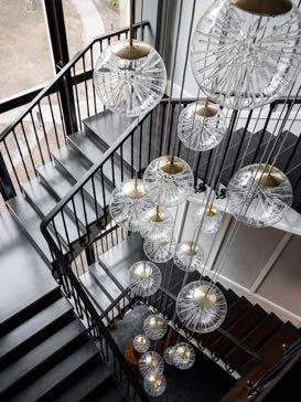 B&B bar stools to create a more informal image of the kitchen. Henge's Tubular Horizontal light composition illuminates the stone island and can be adjusted to the specific mood and atmosphere.