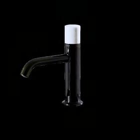 From the dining room you enter the master bedroom. At its entrance, there is a walk-in closet on the left, and en suite bathroom with shower and bathtub by Antonio Lupi on the right. Karan used the elegant shapes of the fittings in a flattering manner against the stark background to create a peaceful, yet charming atmosphere.