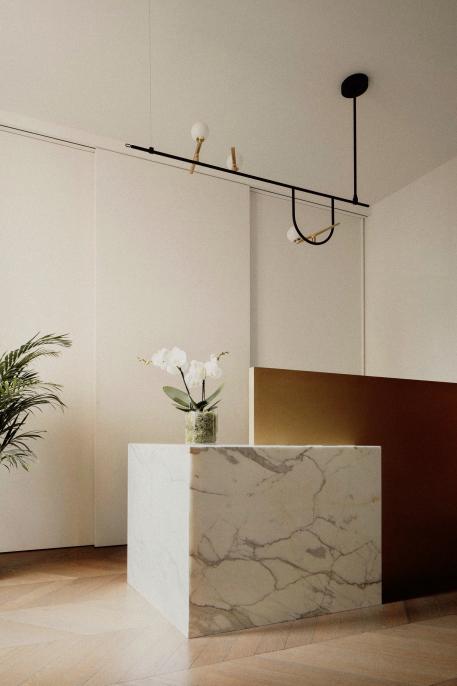 THE LONG AND SINUOUS LINES OF COLOR THAT RUN THROUGH THE NATURAL STONE ARE A REFINED DETAIL IN ANY ENVIRONMENT. BUT ALSO, ALL THOSE DETAILS THAT CAN REMIND US OF THE VEINS OF THE MARBLE ARE WELL SEEN SUCH AS THE MOTIFS OF THE CARPETS, THE ARCHITECTURAL DOOR HANDLES OR LIGHTING.