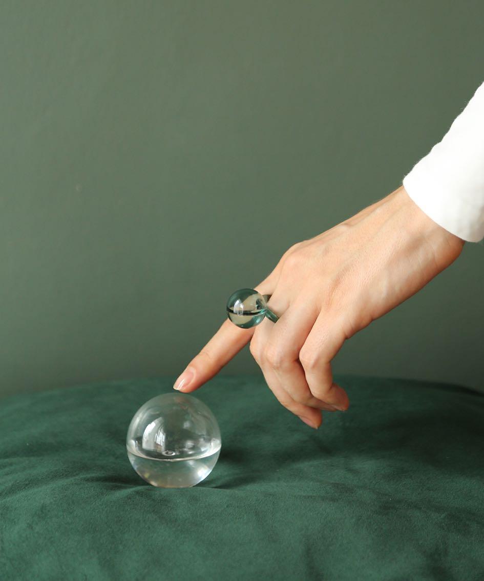«We create the piece by captured droplet in nature and invented the innovation for jewelry production where the glass was used as its body.»