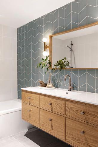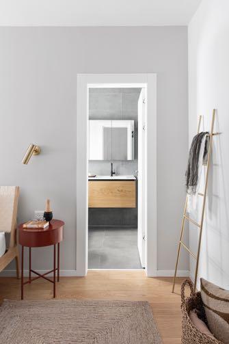 Between the bedroom and the living room, the bathroom and walk-in closet have been wedged - this gives a greater sense of privacy in the sleeping area. Like the rest of the house, this room follows a sober and minimalist design. The main wall is covered with Midsummer might wallpaper, also by Wall&deco; next to this we find Lambert Richard Wrightman's bed with a simple design accompanied by a bench with an olive green upholstery. A combination of minimalist, richly textured and exquisitely detailed interiors, makes this house a perfect place to live!