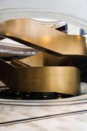 inherent grandeur of the space. MKCA reshaped the apartment’s plan to optimize circulation and the seamless transformation of the home from a series of private, independent spaces into an interconnected, spacious landscape where the family of five can gather together as well as entertain guests. This layout hinges on a pinwheel-shaped circulation zone at the apartment’s core, which includes a central elevator landing, formal entrance gallery, and kitchen. Movement through these areas creates multiple opportunities