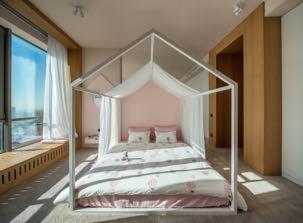 For the bedrooms, the designers opted for wallpaper with different prints and other interesting textures.