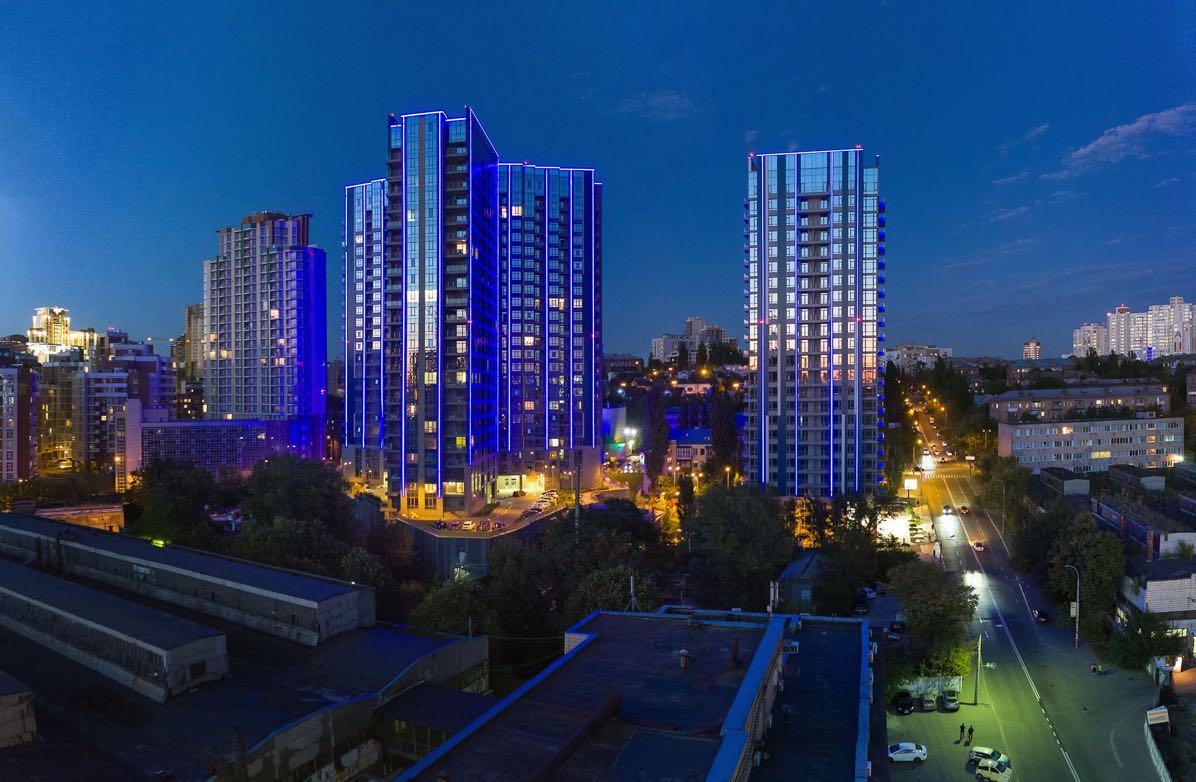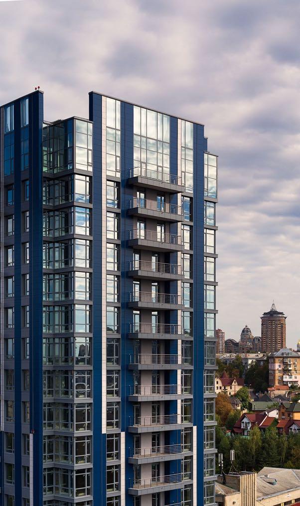 Located in Kyiv’s most prestigious central district - Pechersk, it remains hidden from noisy motor thoroughfares and pedestrian flows. A business-class residential complex in Kyiv’s most prestigious central district, Pechersk. This project is the trendsetter in its category: the complex’s three high-rise sections and a huge lobby space. The architects came up with the idea of making outreaching glass facades to make sure that nothing obstructs glass plates, thus creating a visual impression of lightness and dynamicity.