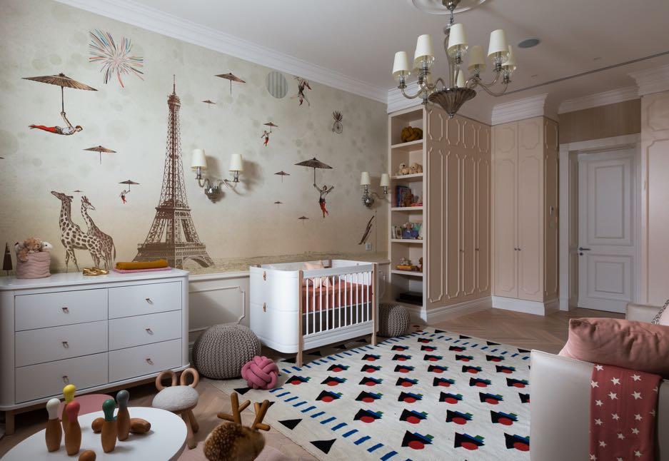 . room of the child is divided into two zones: for recreation and for study. The perimeter of the room and the work desk decorated in the form of lovely houses, designed by ZOOI interior designers.