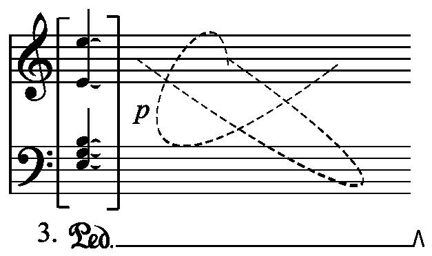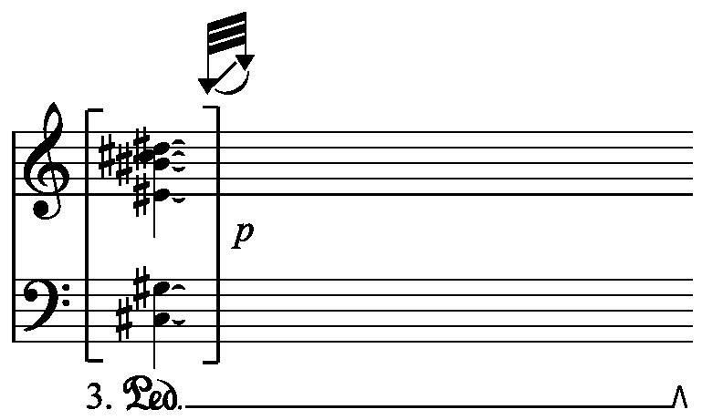 = hold the indicated chord in the 3rd pedal and make a fast glissando over that register on the strings