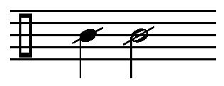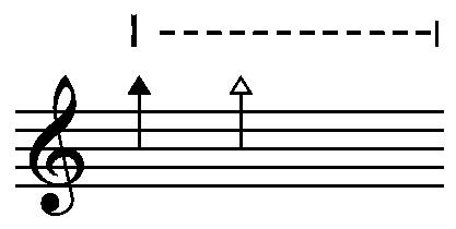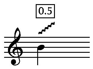 = tip the string on the indicated note - a mixture of the string's note and the tipped note will occur