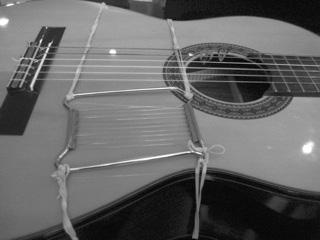 on the body of the guitar an Egg Slicer is to be attached, a magnetic construction can be ordered from the composer: mail(at)lisastreich.se