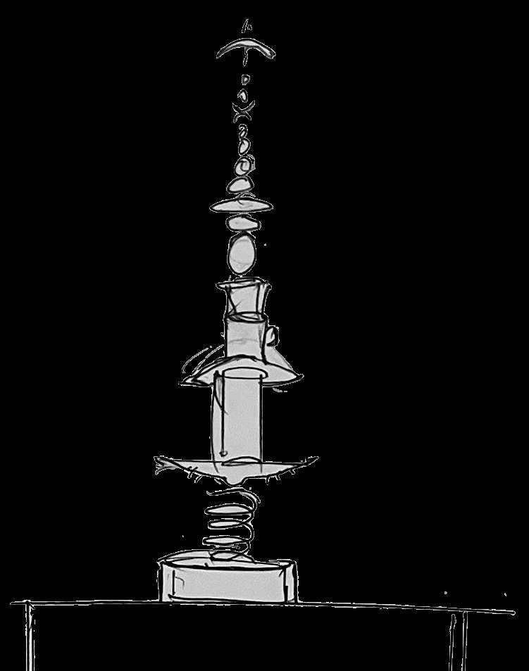 On a table, hastily stack up an unstable tower of items as high as you can—a mix of percussion instruments, kitchen/everyday items, toys, rocks, shells, beans, rice etc.—things that will make a complex sound when the tower collapses… (space is needed around this construction so that other musicians and their instruments are not hit by falling objects).
