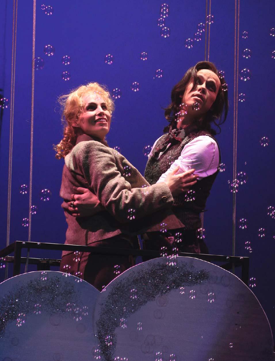 2. Akt: Künstlerkneipe „Zum goldenen Spatzen“ Grisander amüsiert sich mit Freunden in der Künstlerkneipe „Zum goldenen Spatzen“. Als Ora das Lokal betritt, erkennen sich beide sofort, da sie in ihrer alten Garderobe auftritt und sich mit ihrem früheren Namen Lori rufen lässt. Da sich Grisander in der Vergangenheit oft abwertend über reiche und schöne Frauen geäußert hat, war sie in Sorge darüber, wie er reagieren könnte, wenn sie ihm als mondäne Tänzerin gegenüber tritt. Sie bemerkt, dass er von ihrer plötzlichen Abreise vor fünf Jahren noch immer enttäuscht ist. Nach einer Aussprache ist die alte Liebe zwischen den beiden jedoch schnell neu entfl ammt. Allerdings hat sich Ora ihm noch nicht in ihrer wahren Gestalt gezeigt.