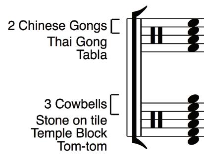 Instruments with bracketed pitches to lead. (dynamics are hushed)