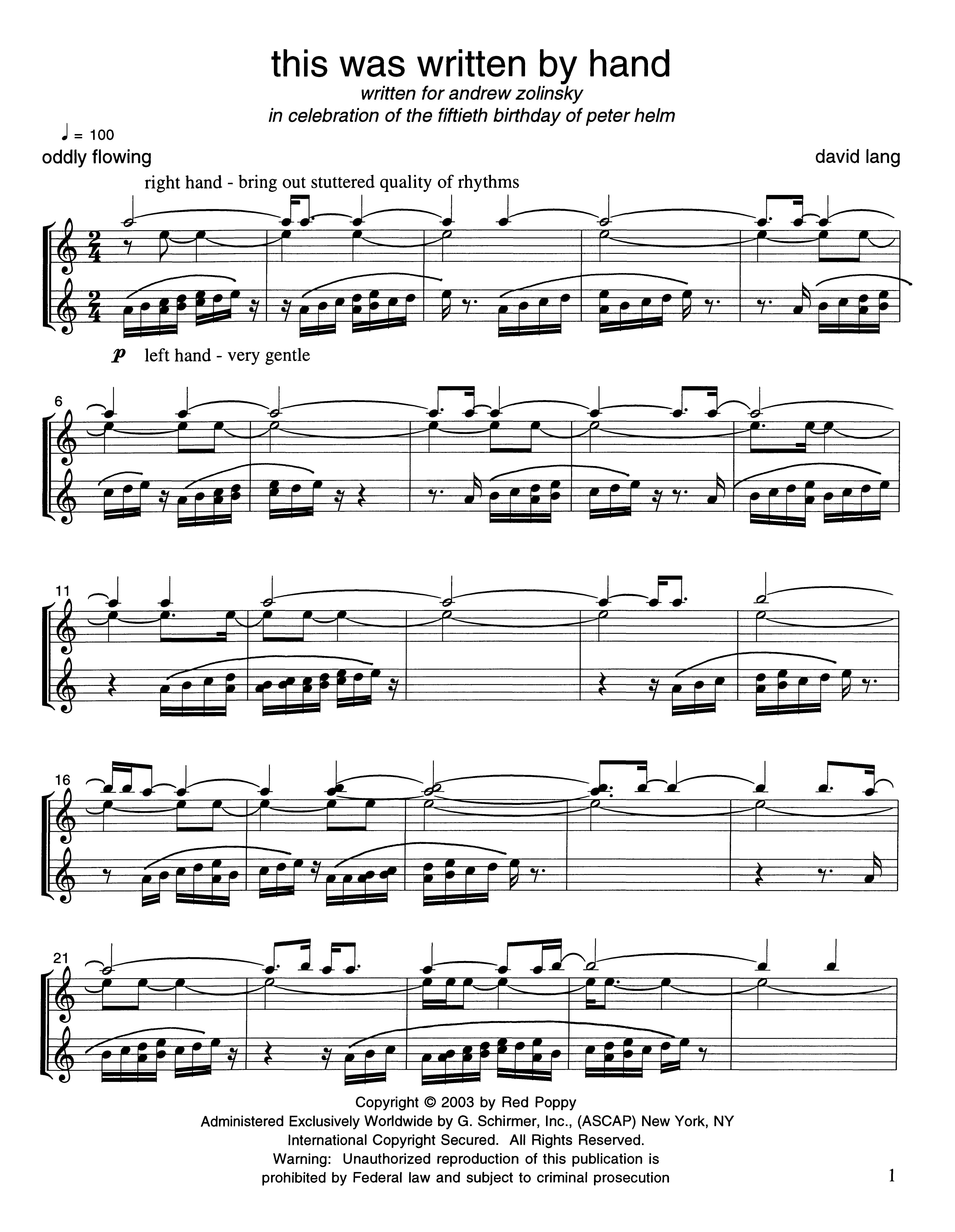 THIS WAS WRITTEN BY HAND FOR SOLO PIANO CopyrightbyRicordiNewYork