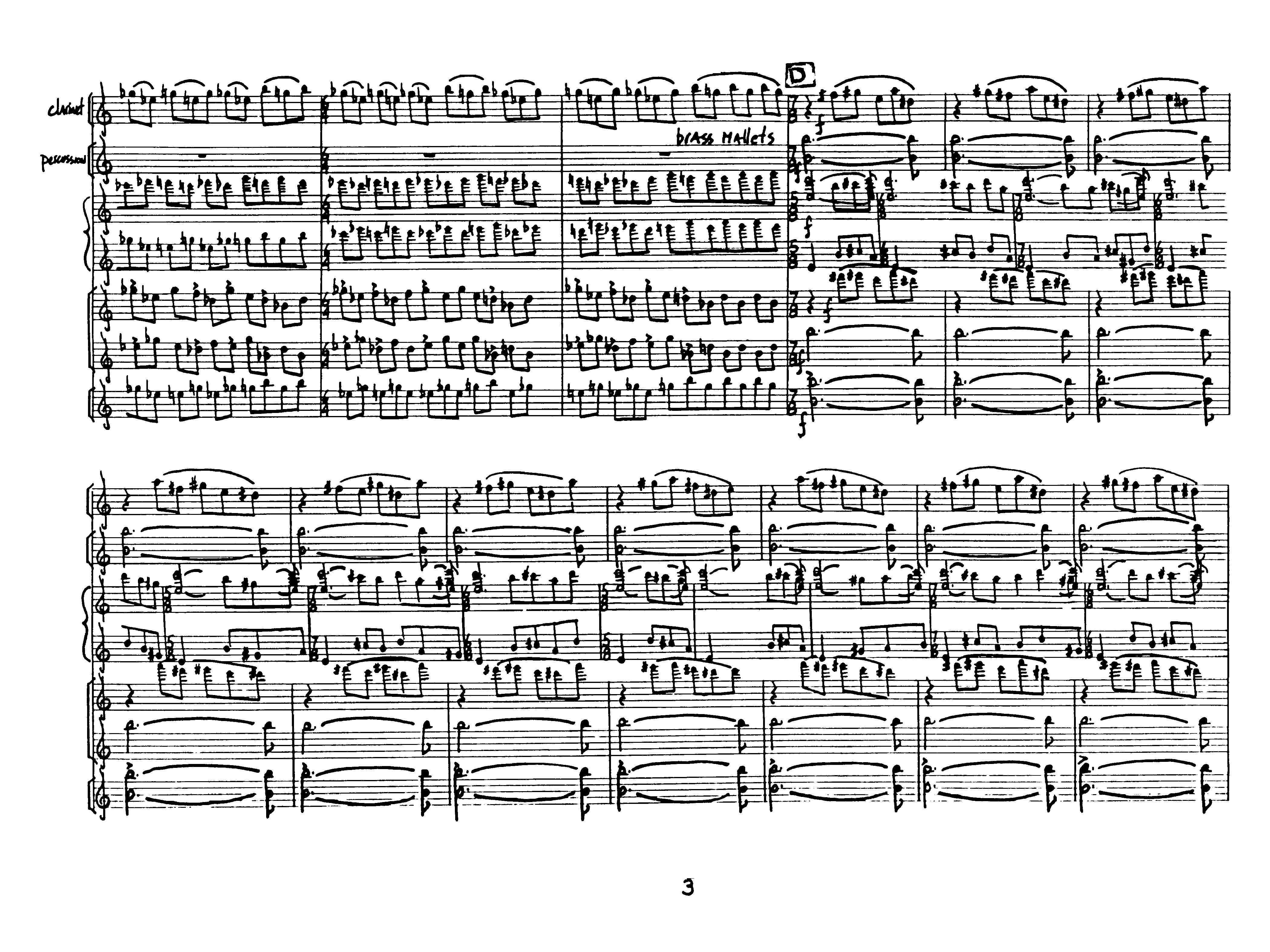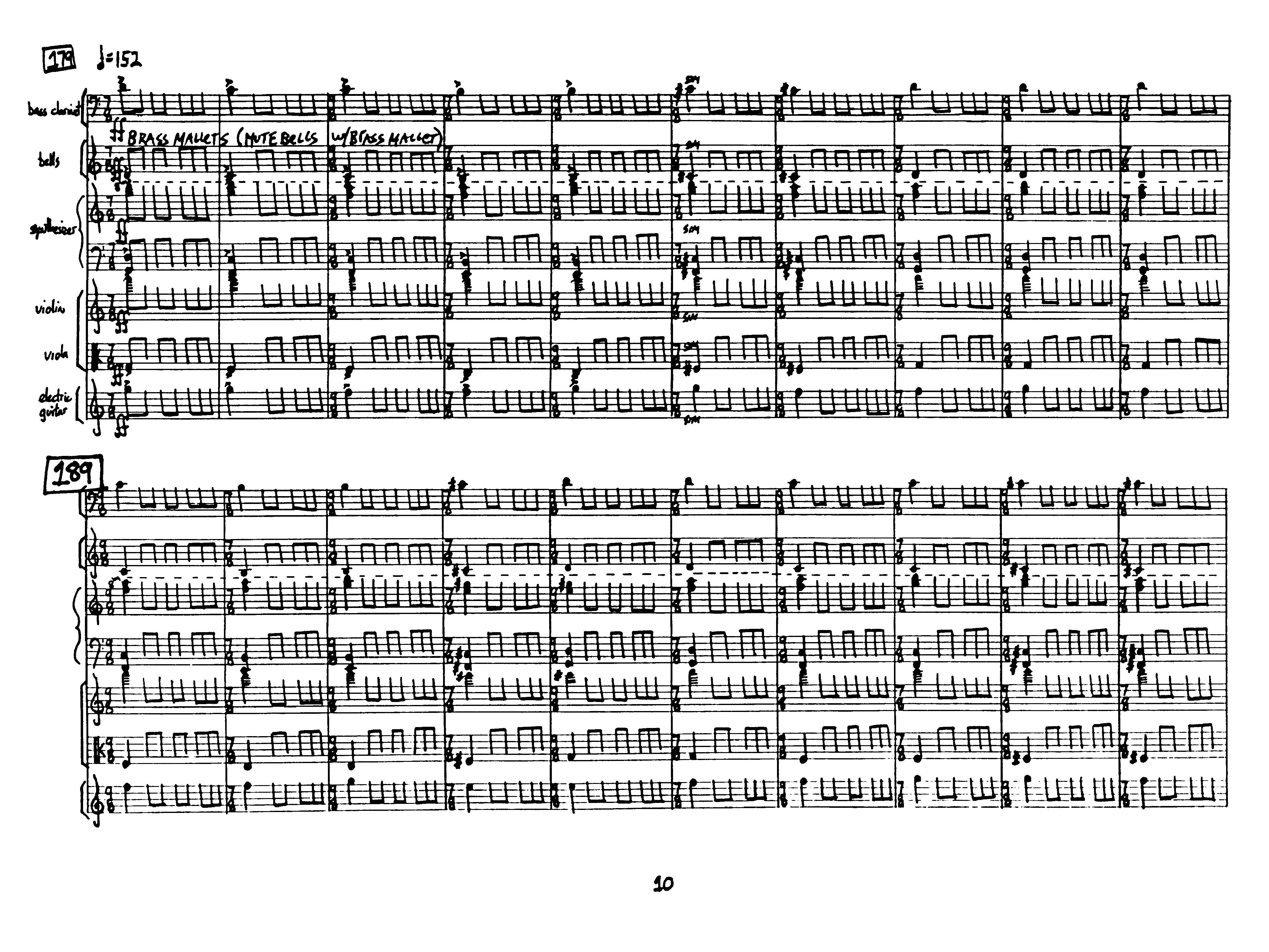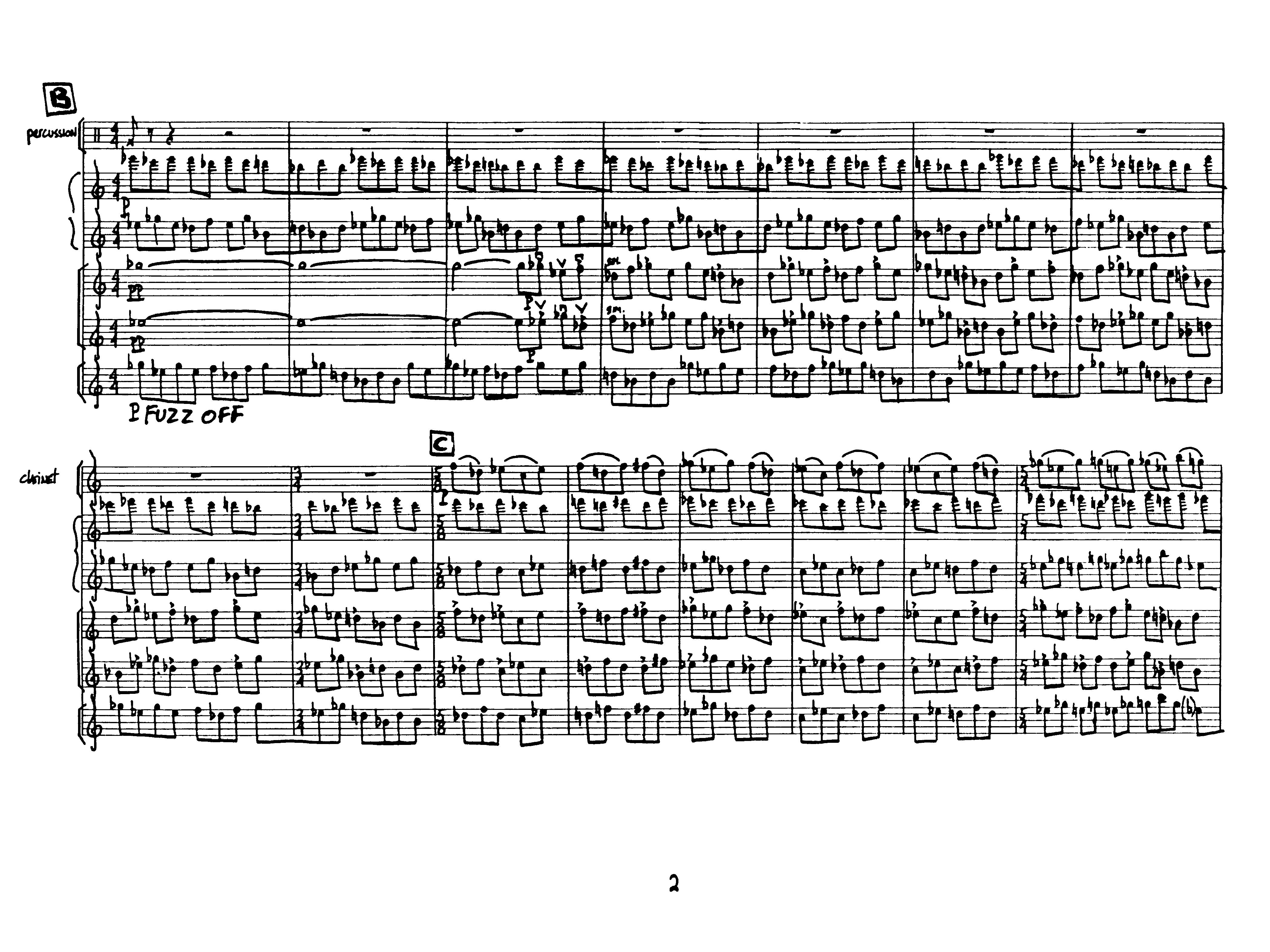 for clarinet, percussion, synthesizer, violin, viola and electric guitar