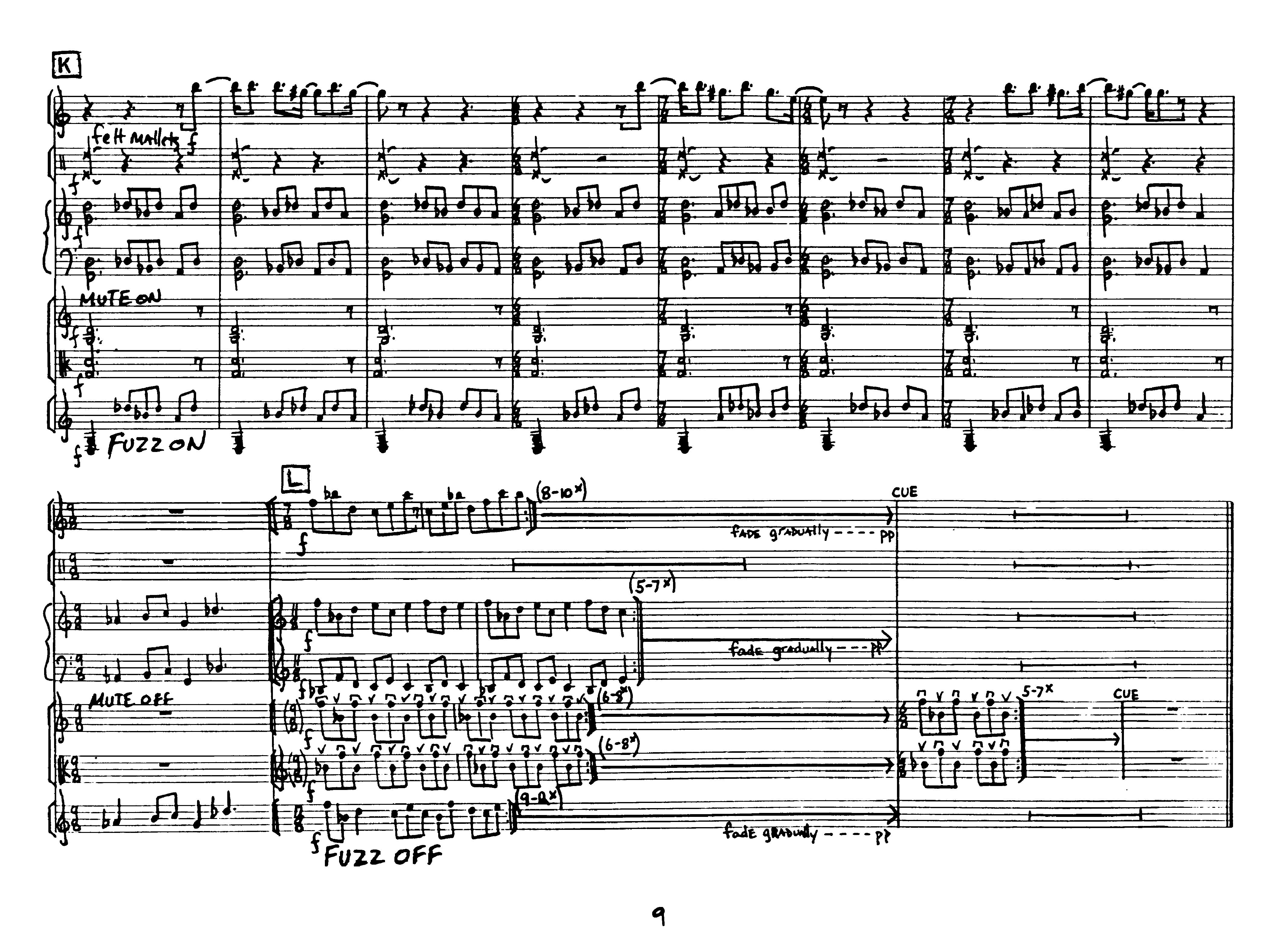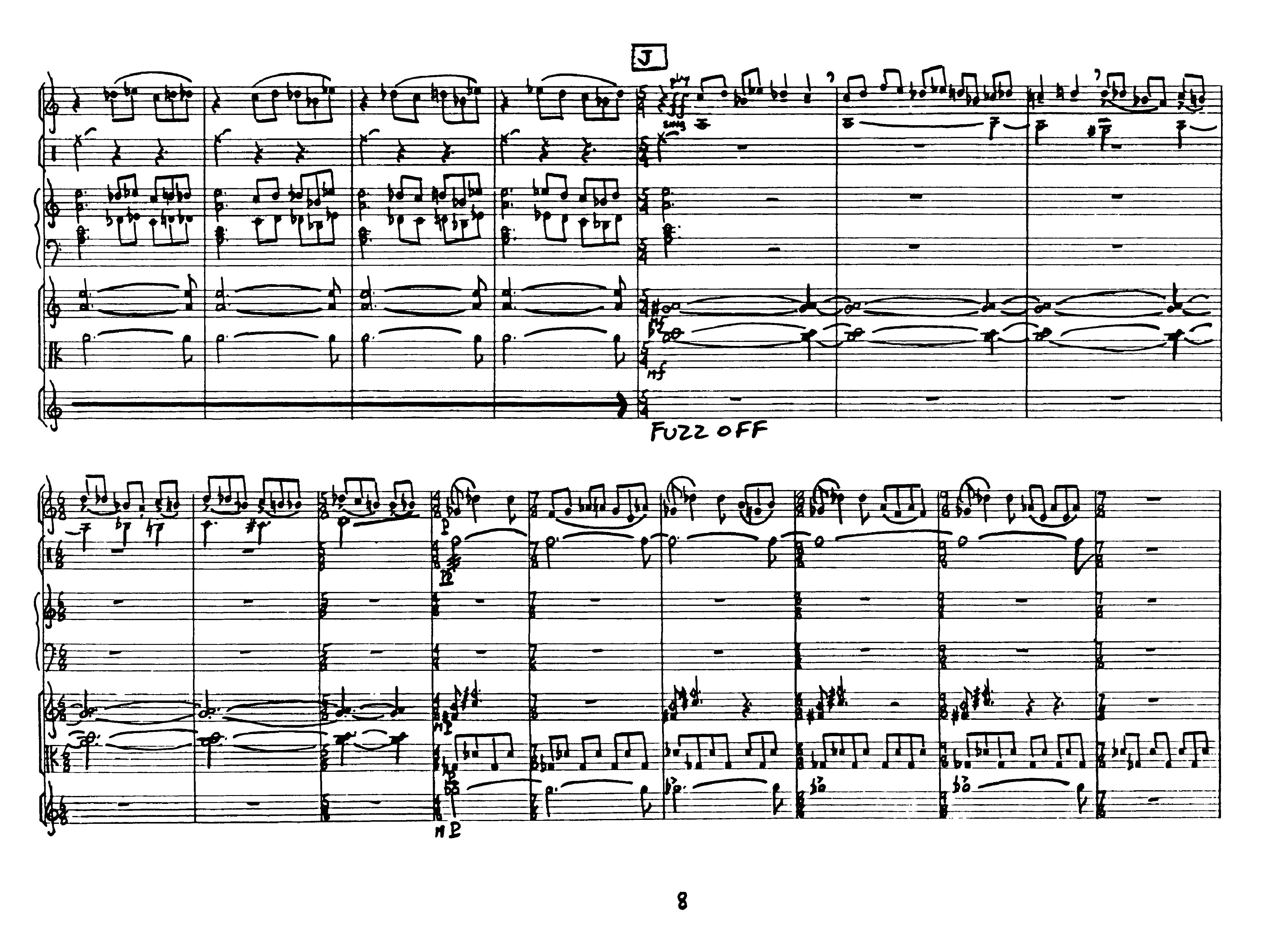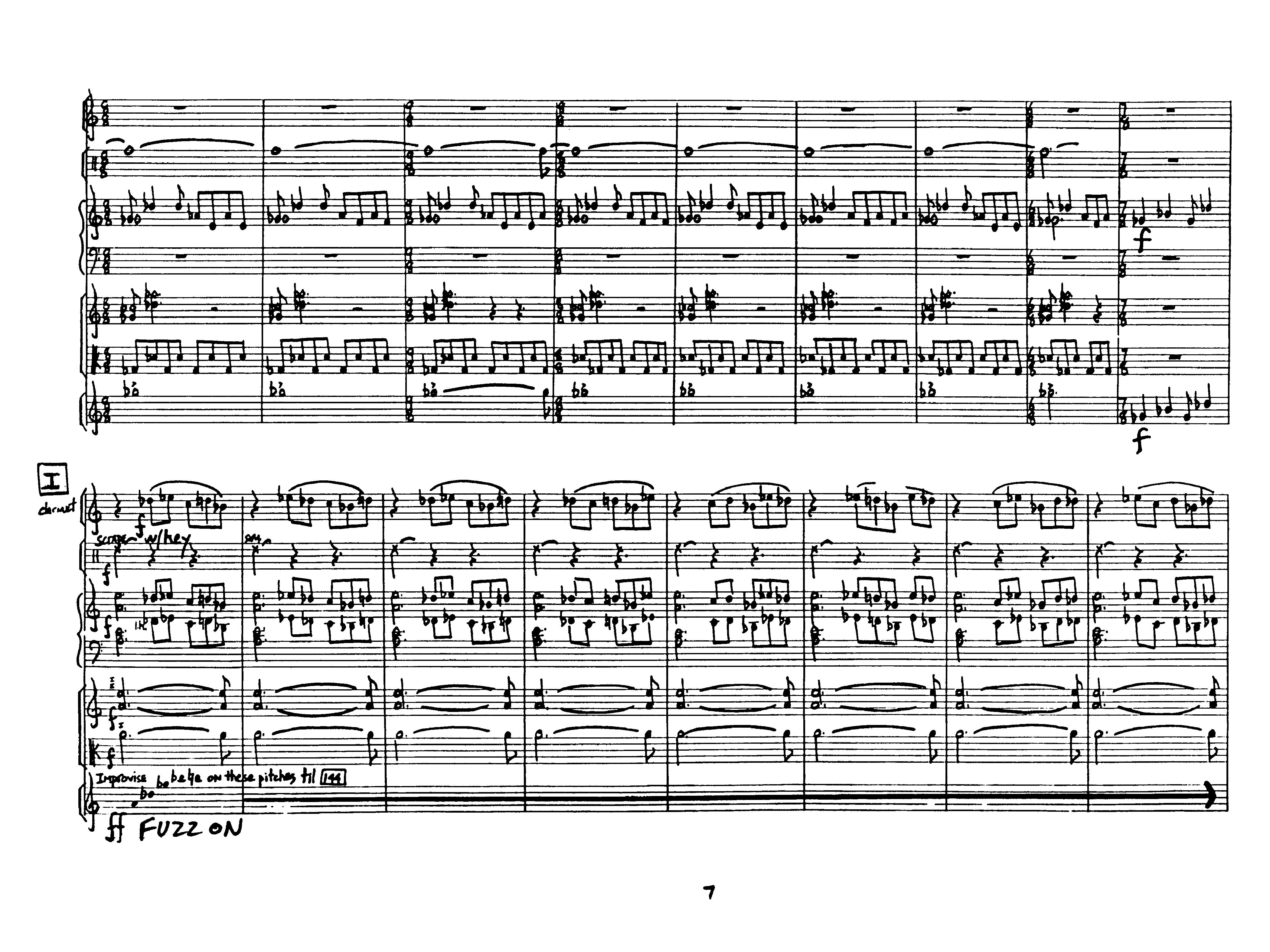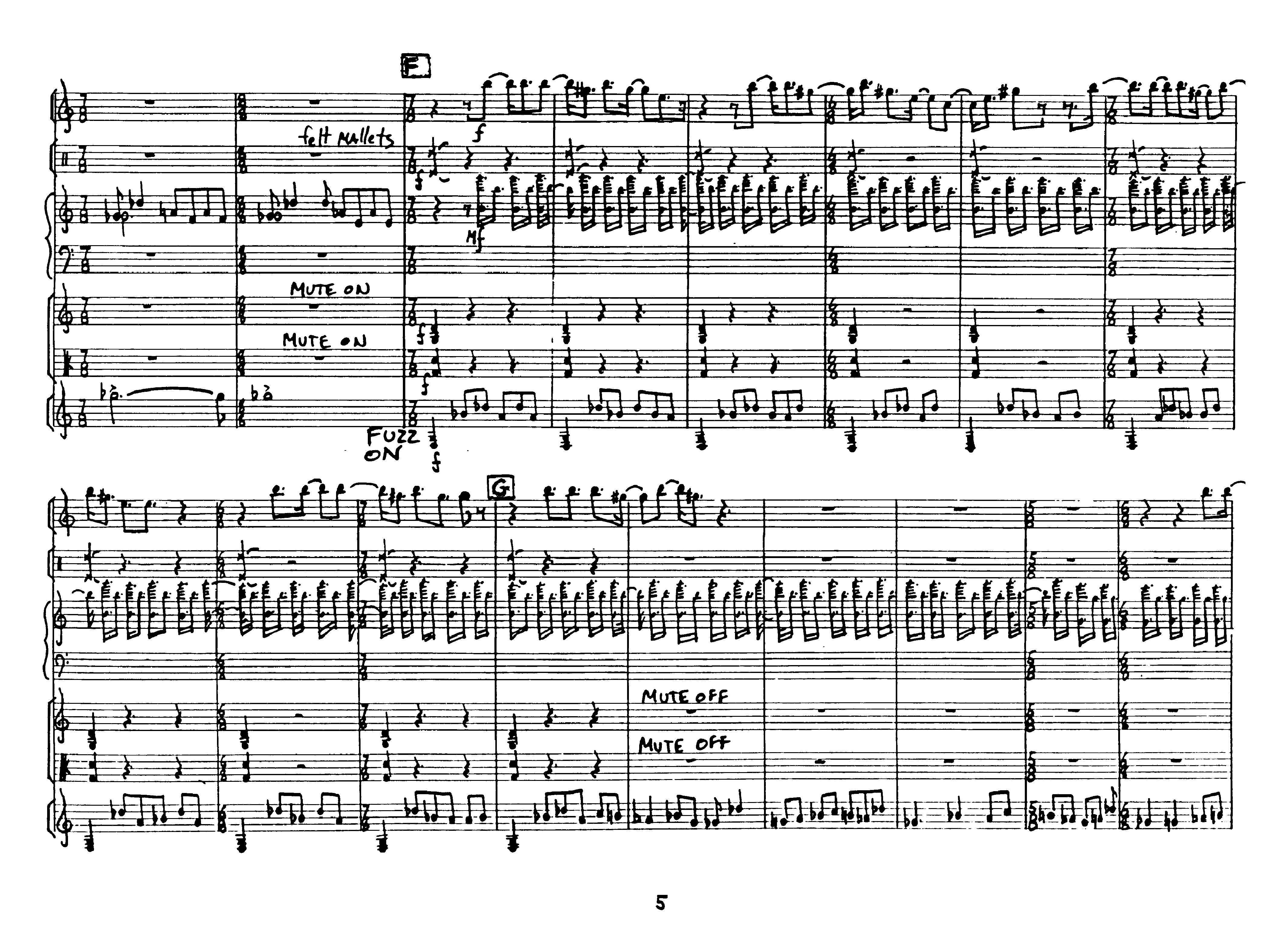 for clarinet, percussion, synthesizer, violin, viola and electric guitar