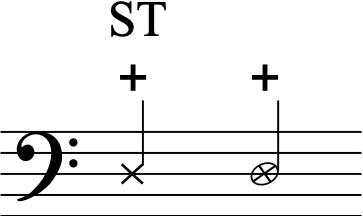 = a piece of aluminum foil should be fixed to the music stand. Play into it to produce a distorted sound when this symbol appears. = play on Castanets