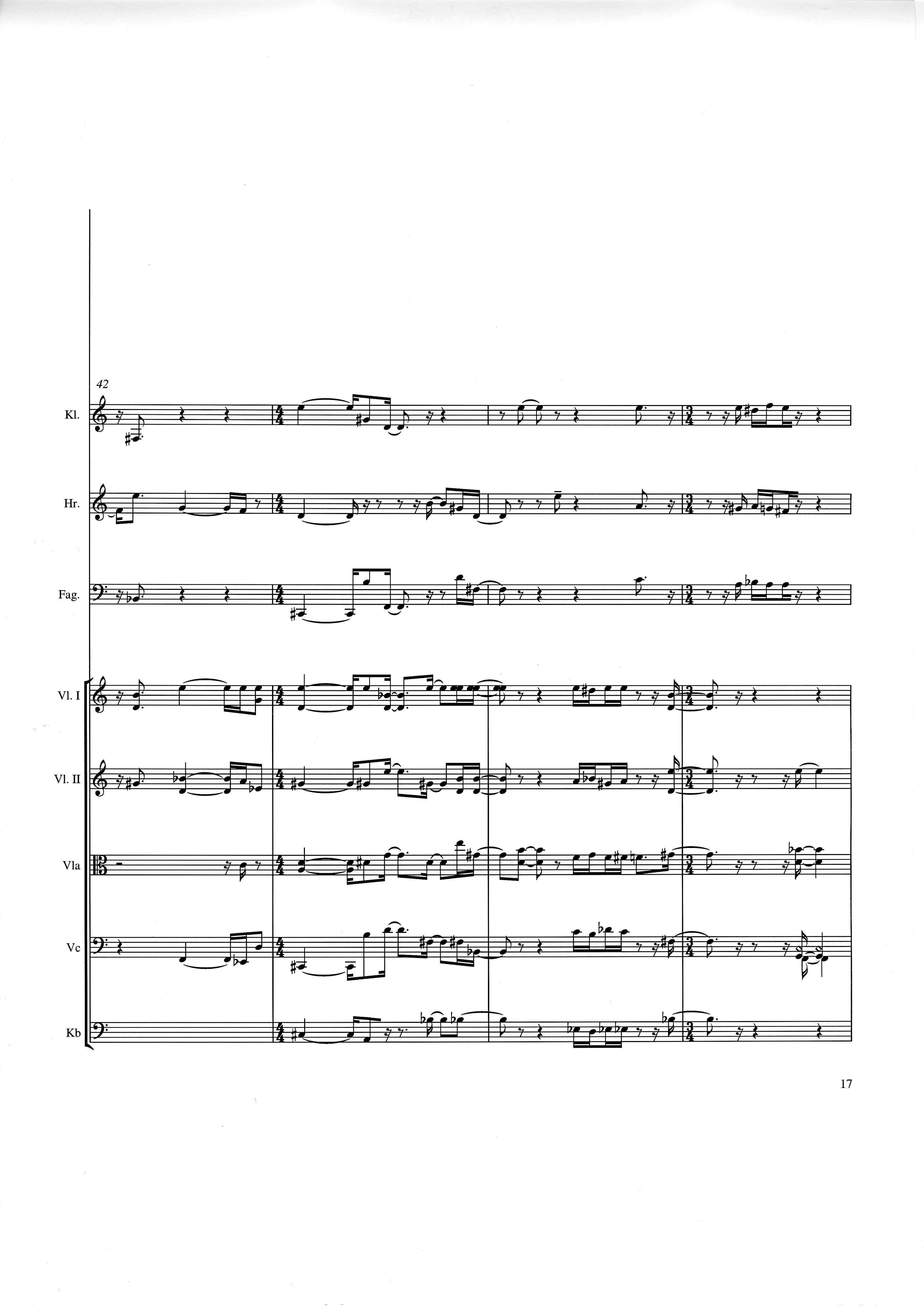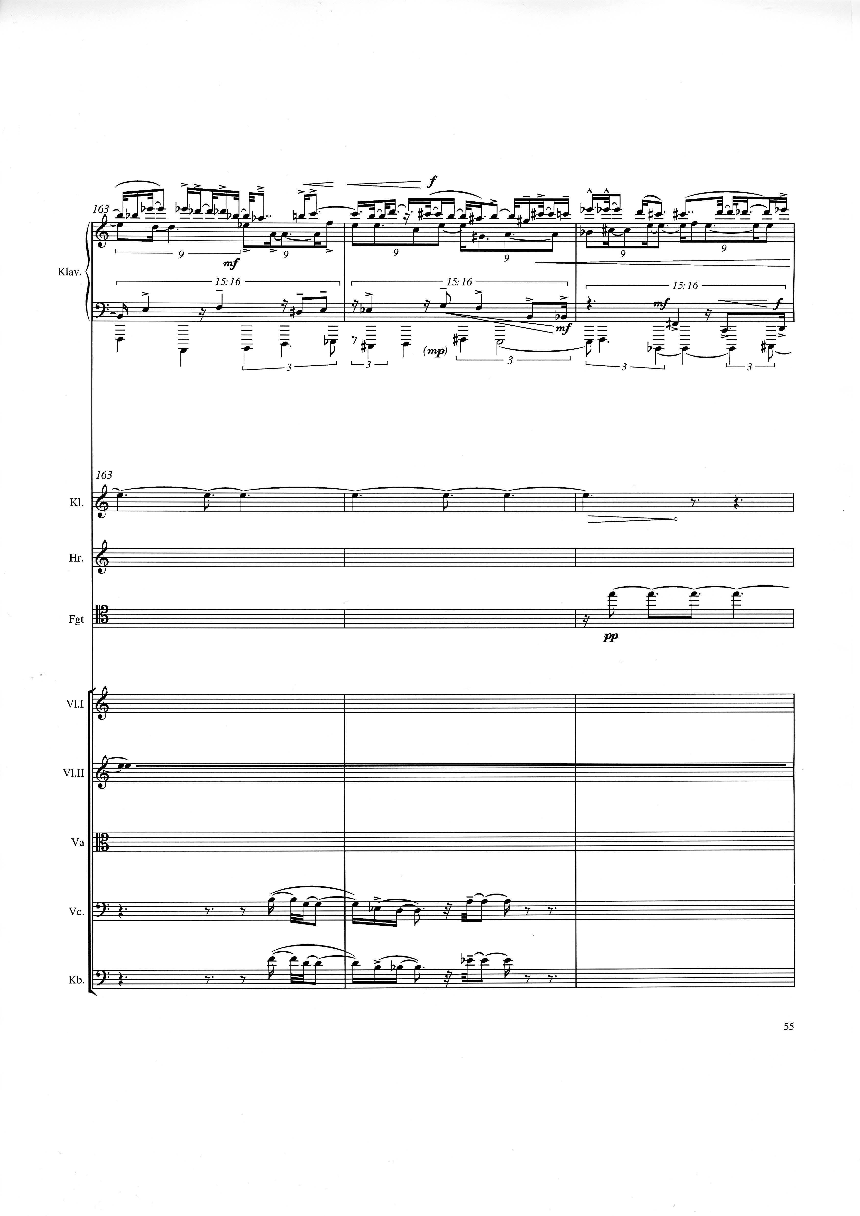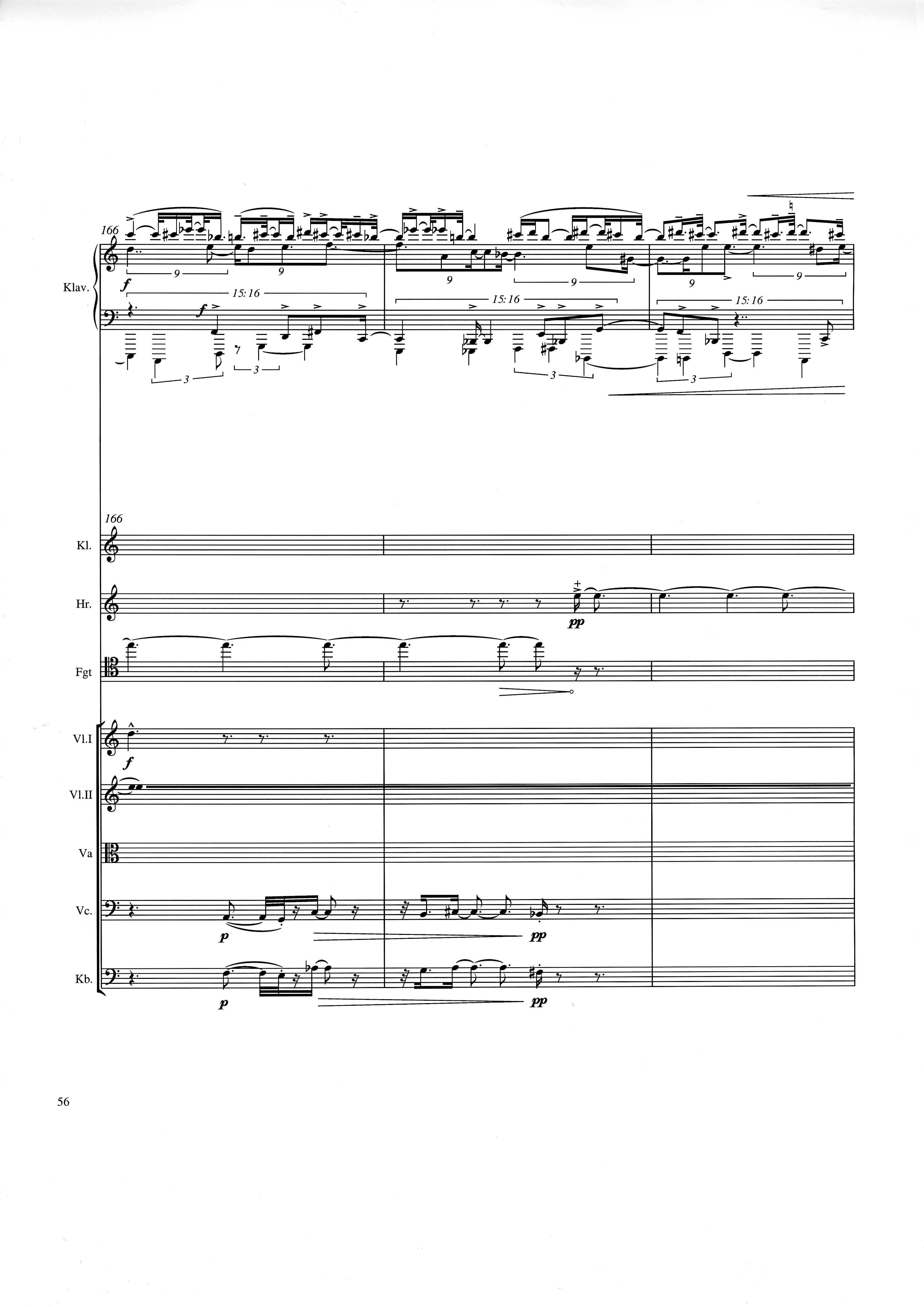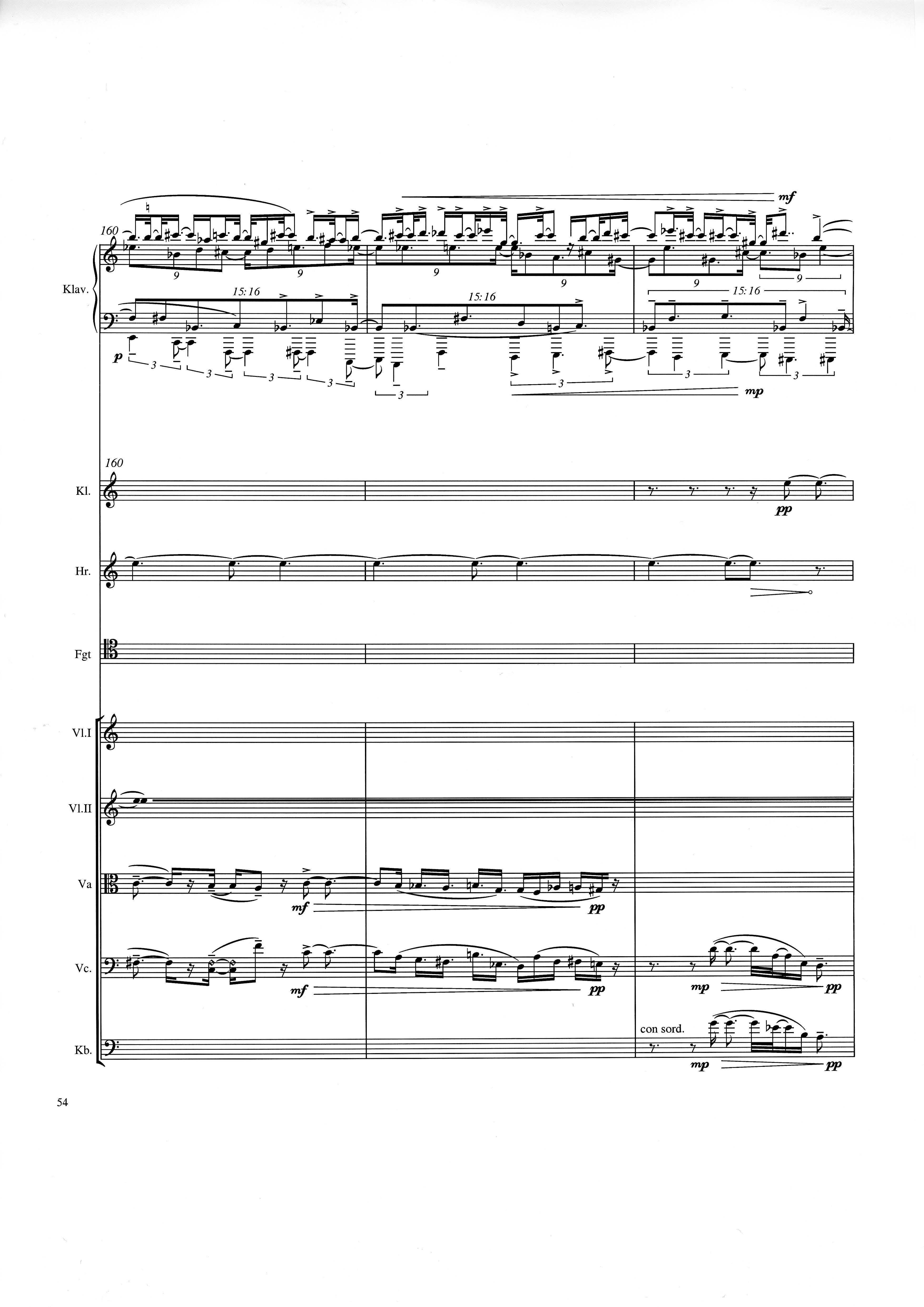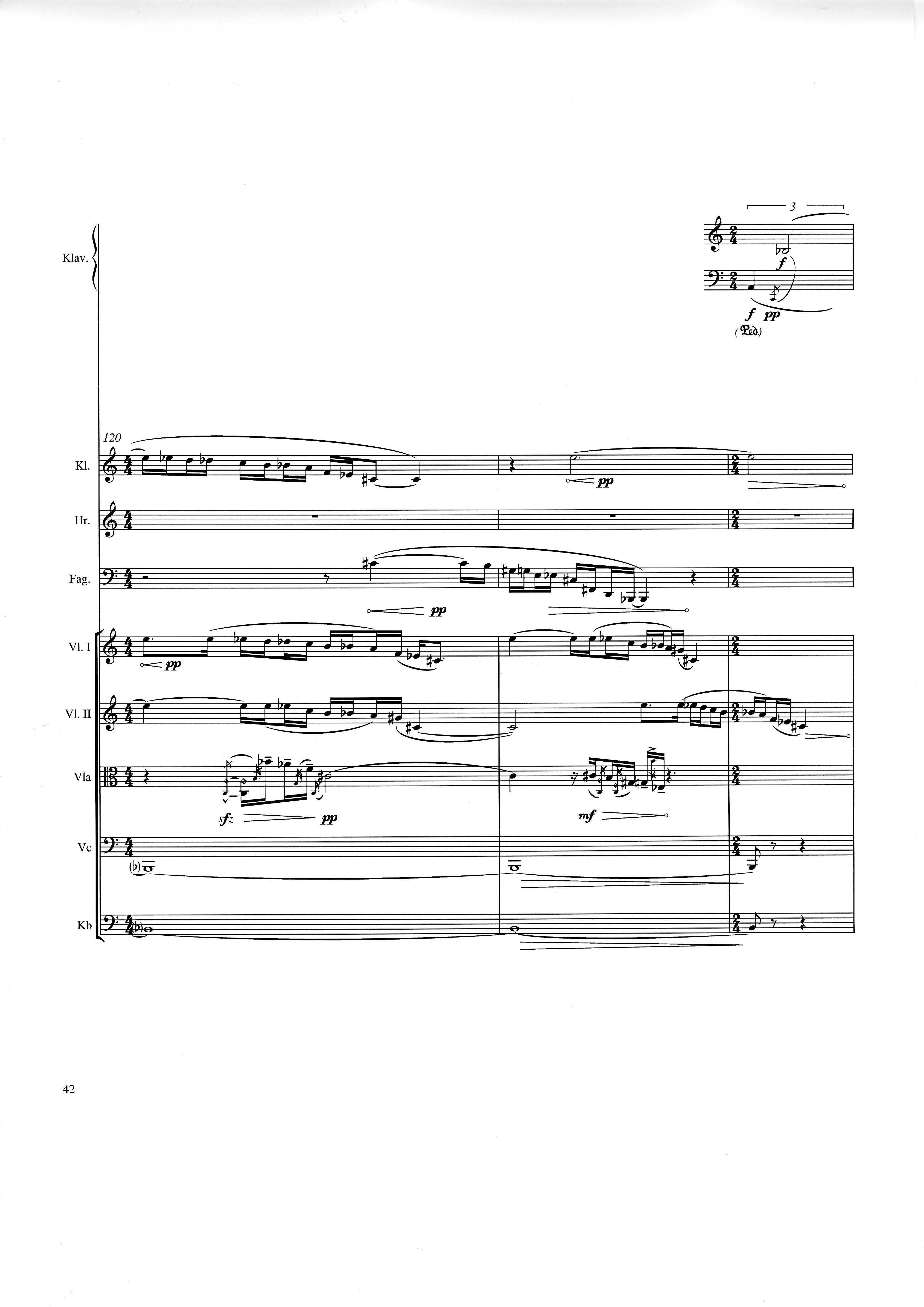 up (Klavierstück 4): Klavier solo down: Klarinette, Horn, Fagott, 2 Violinen, Viola, Violoncello, Kontrabaß strange: Klarinette (auch Baßklarinette), Harfe, Schlagzeug (Holztrommel, Große Trommel , Großes Becken) charm: shô (auch û), Violine [alternativ kann statt shô ein Akkordeon besetzt werden; die auf einem zusätzlichen System notierten Töne im Baßschlüssel]