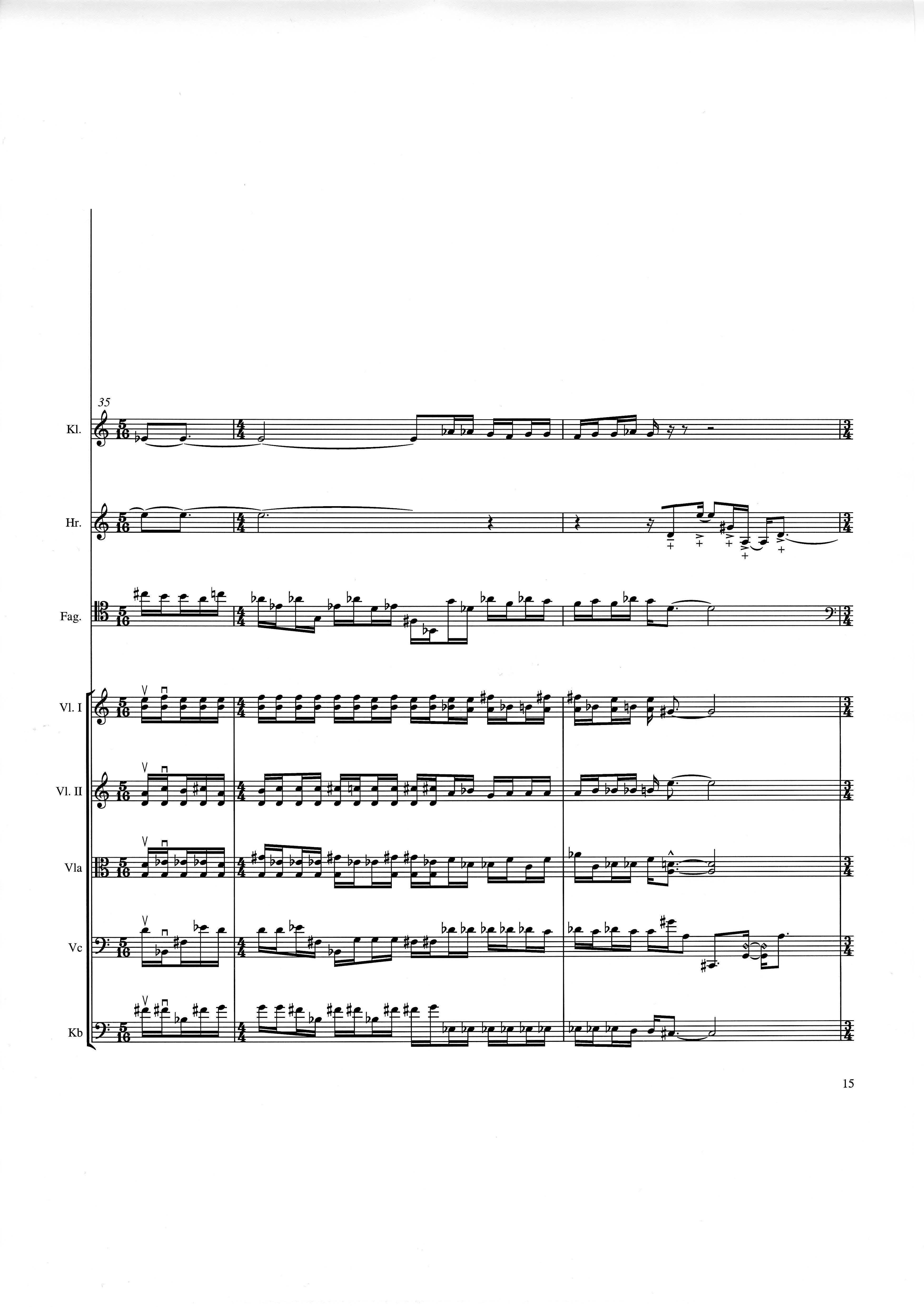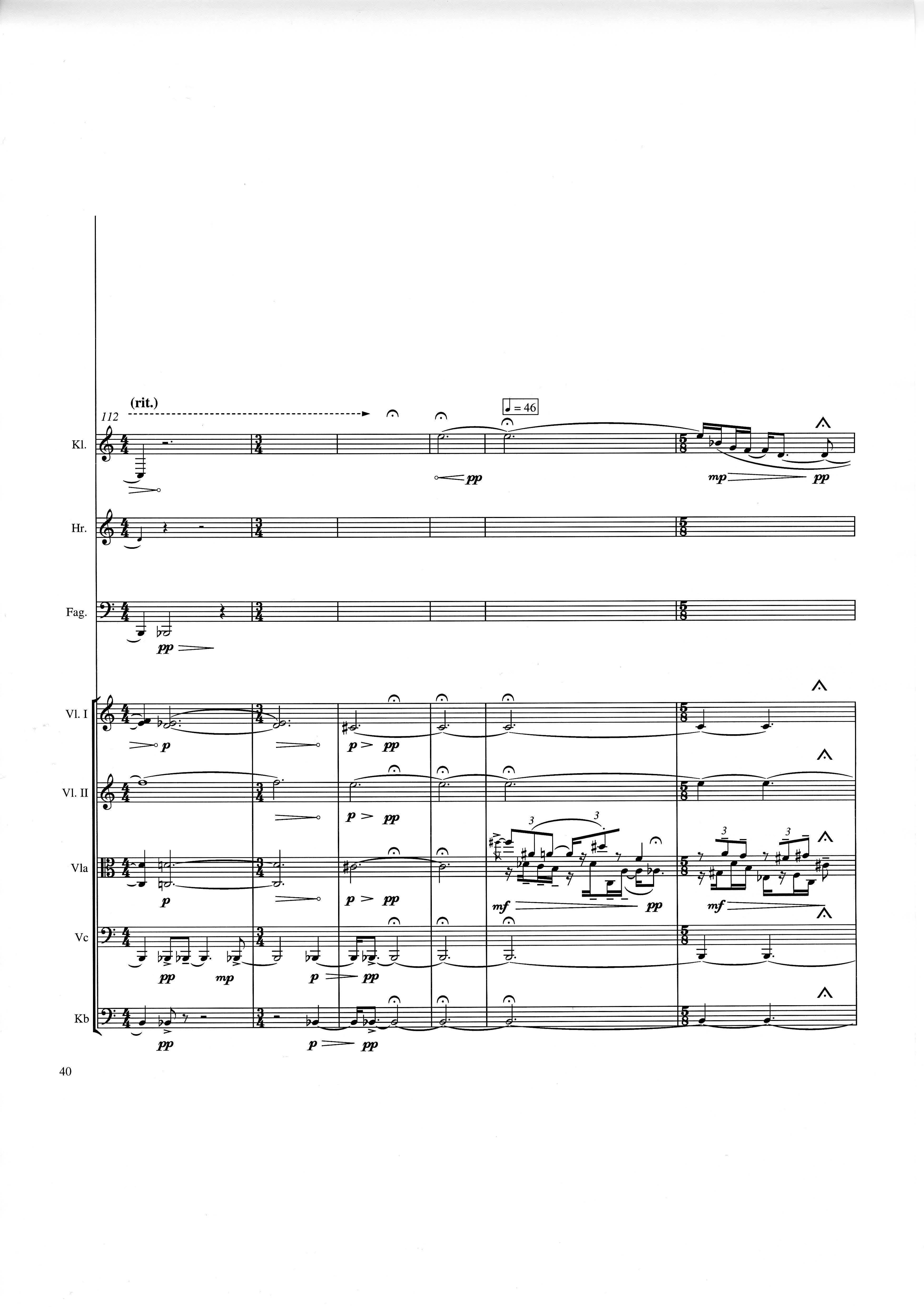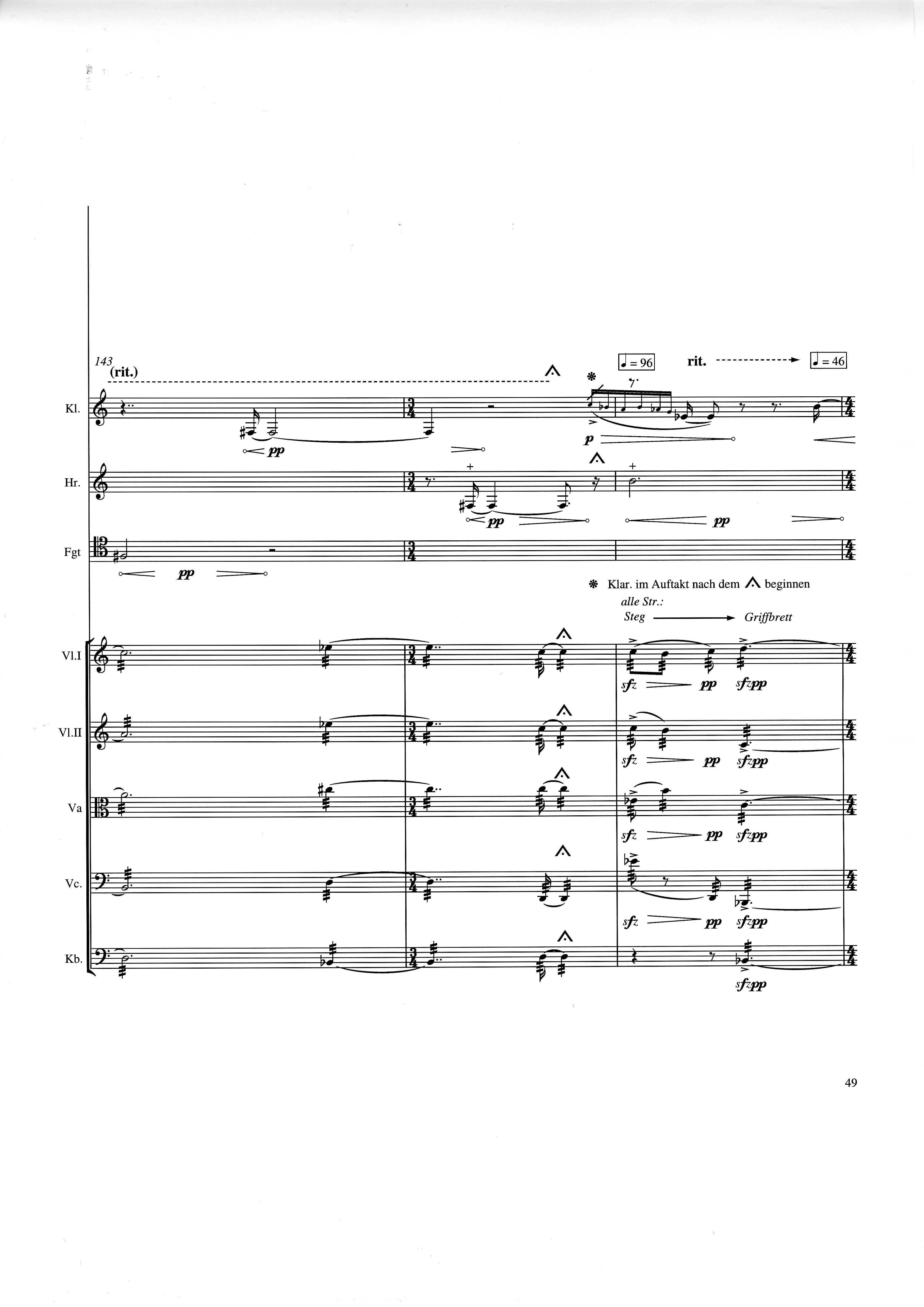 In der Gesamtpartitur klingen alle Instrumente wie notiert mit der üblichen Oktavierung für shô und Kontrabaß. Vorzeichen gelten nur für die Note, vor der sie stehen. In der Einzelausgabe von strange (Spielpartitur) und in der Synchronpartitur von strange charm ist jeweils die Klarinette transponiert.