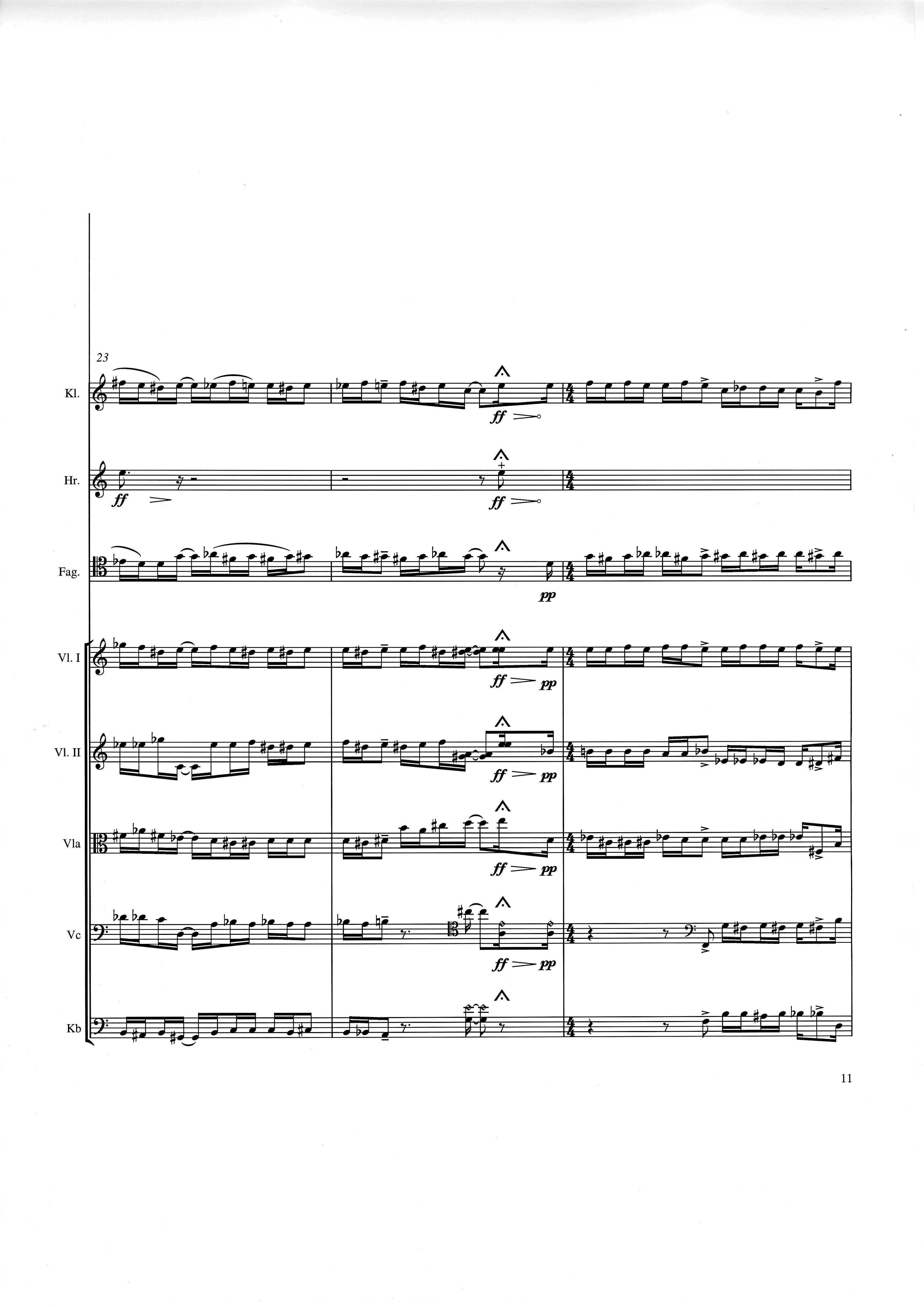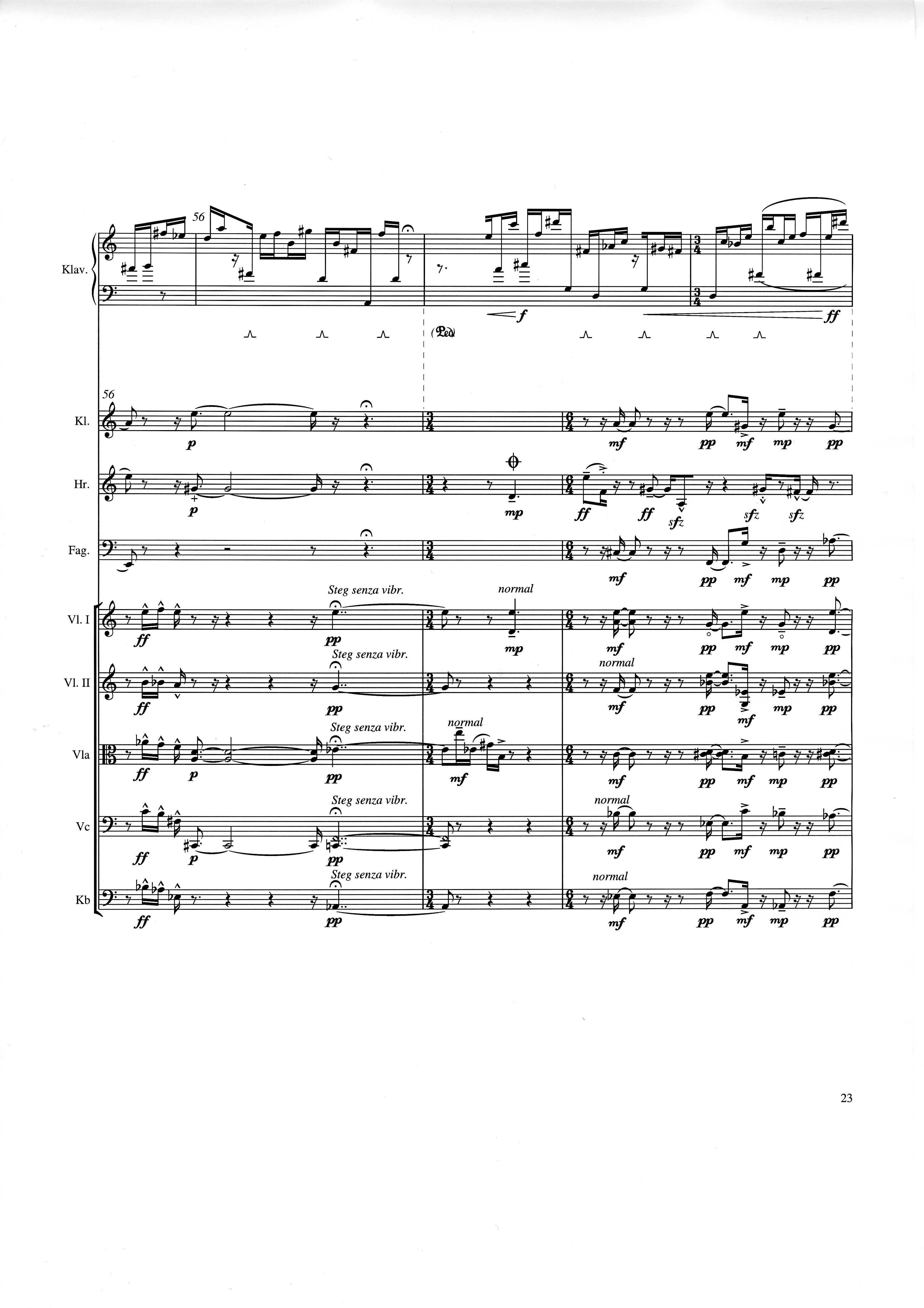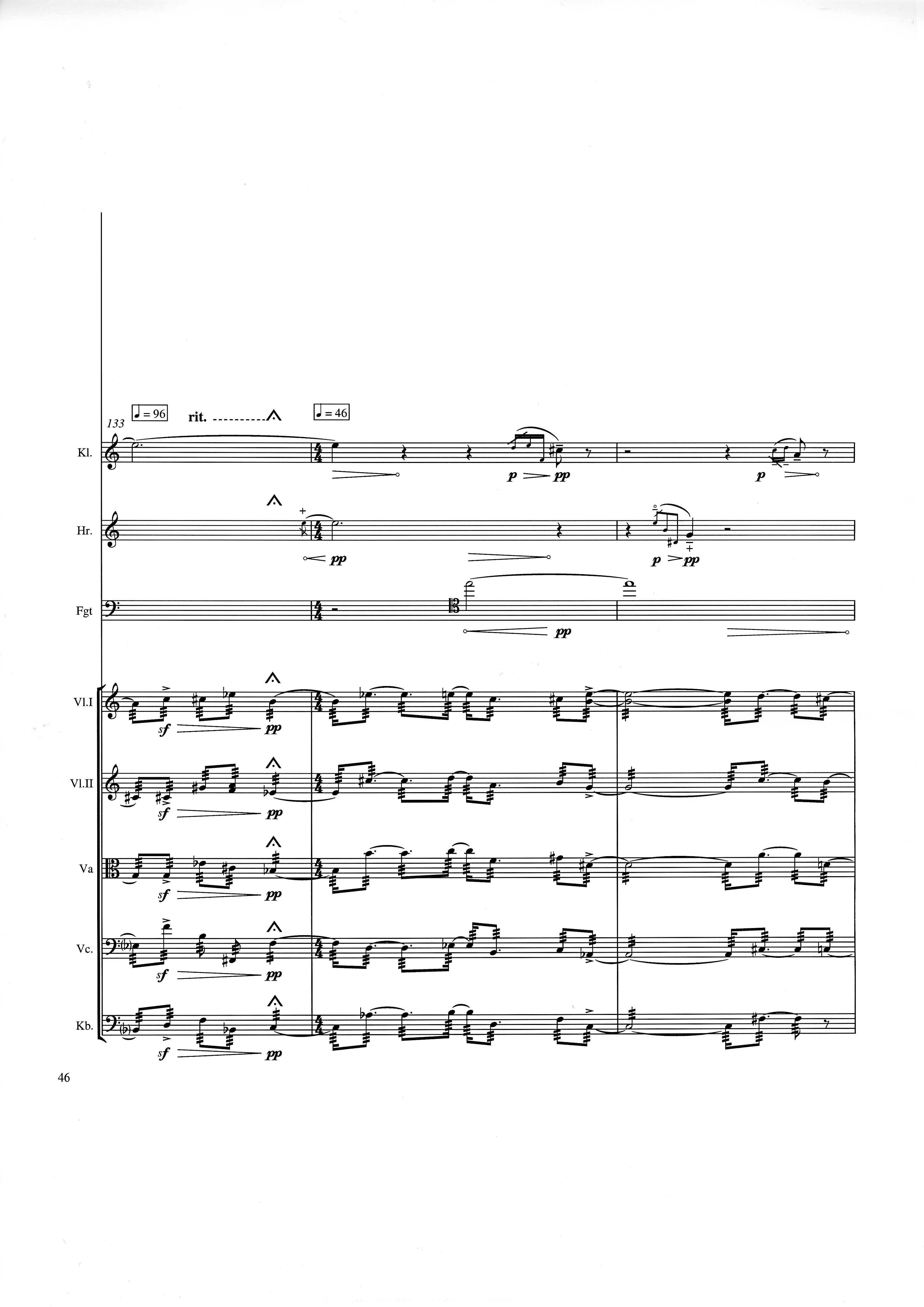 In der Gesamtpartitur klingen alle Instrumente wie notiert mit der üblichen Oktavierung für shô und Kontrabaß. Vorzeichen gelten nur für die Note, vor der sie stehen. In der Einzelausgabe von strange (Spielpartitur) und in der Synchronpartitur von strange charm ist jeweils die Klarinette transponiert.