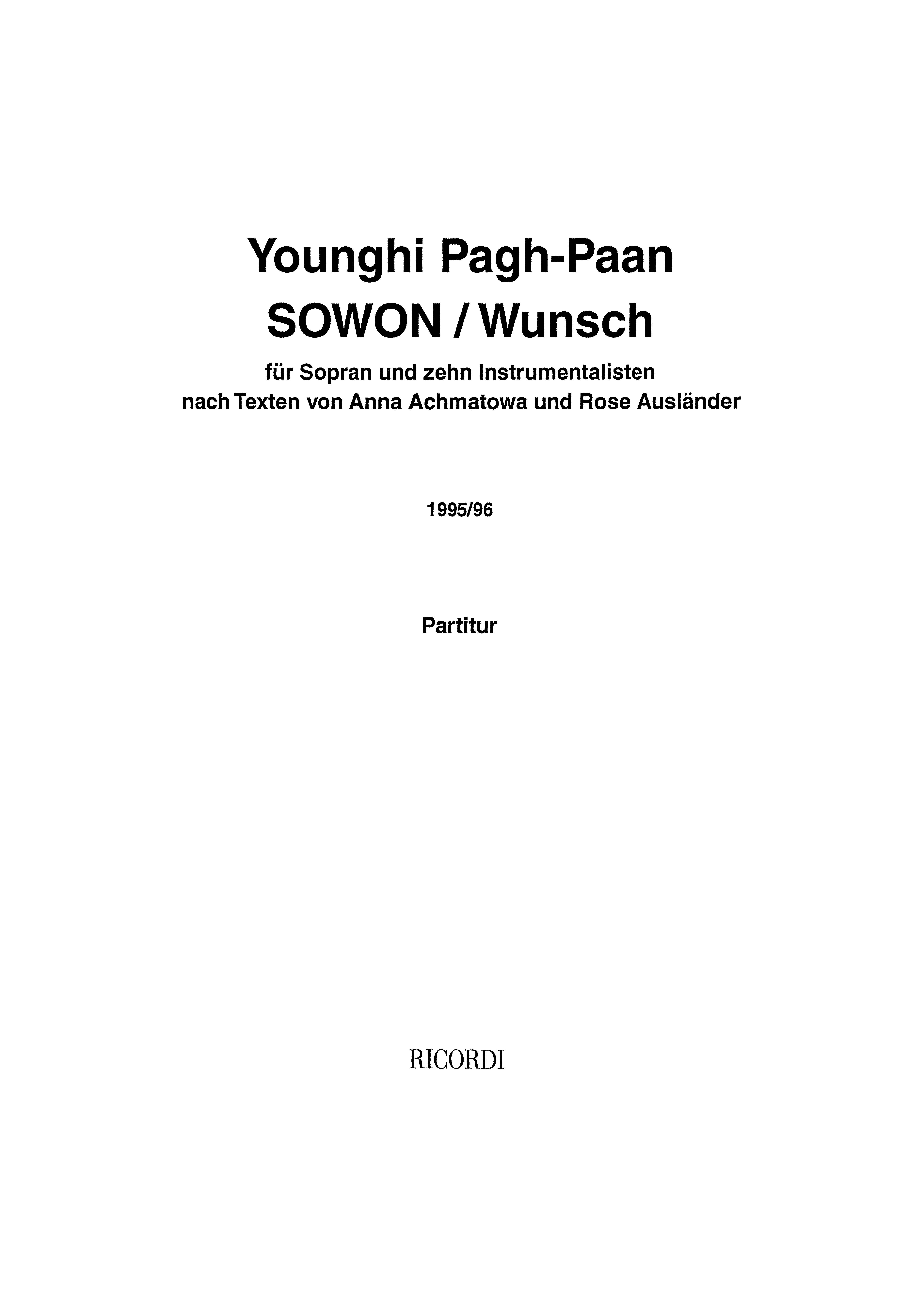 SY 3264 | Younghi Pagh-Paan - Sowon/wunsch 1995/96 by Ricordi - Issuu
