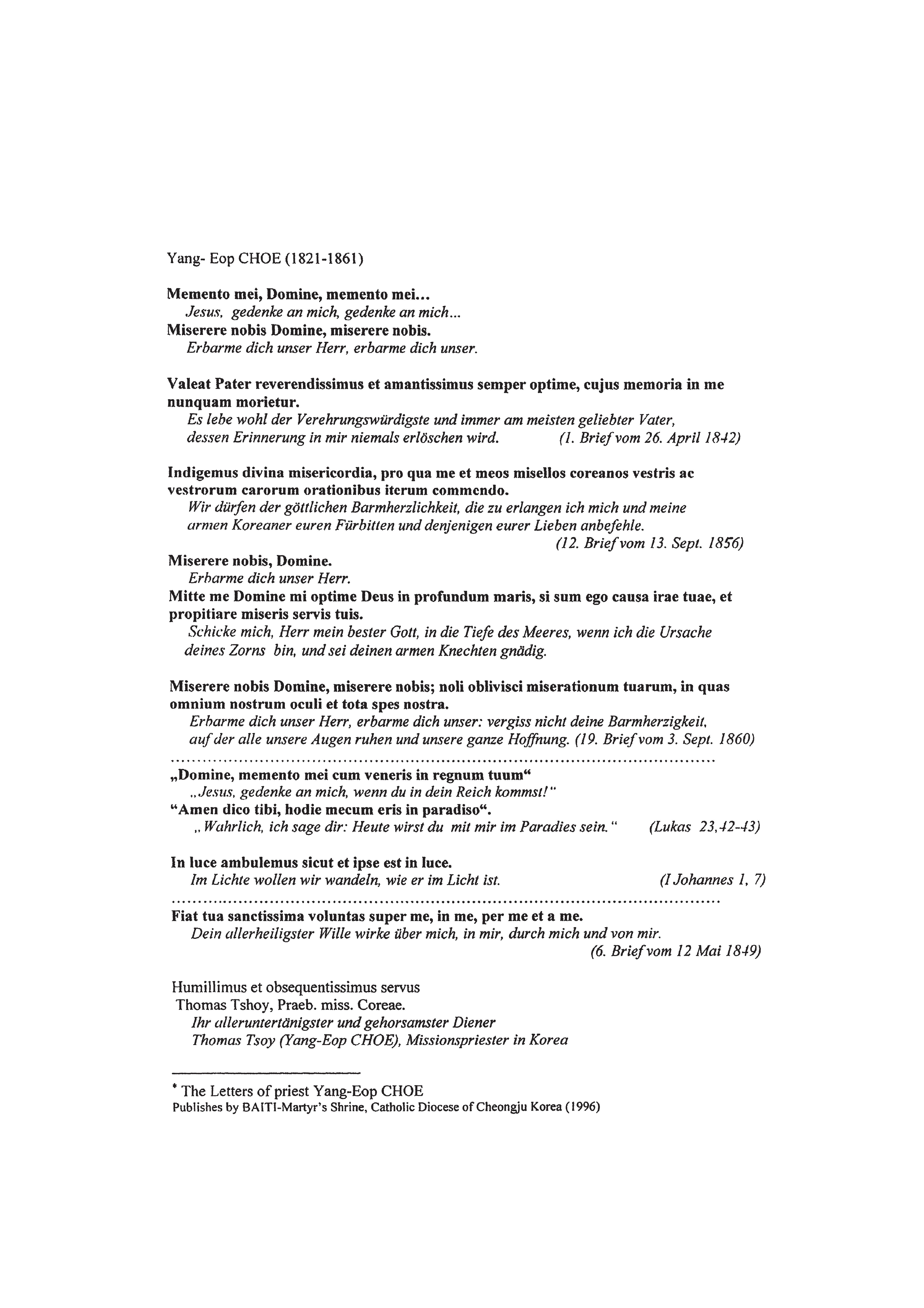 auf Texte aus den Briefen des zweiten koreanischen Priesters