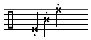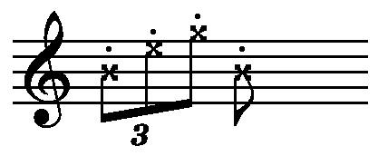 = tip the string on the indicated note - a mixture of the string's note and the tipped note will occur