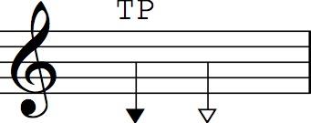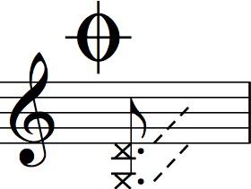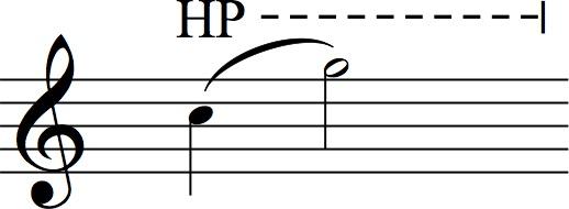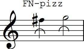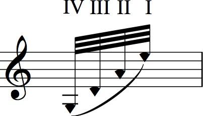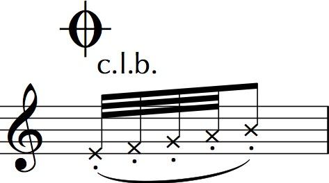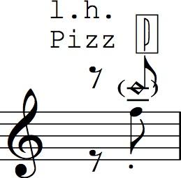 = press the lower note normally and touch the 5th flageolet with the tension screw of the bow. = press given string on given note with the fingernail of the left hand and execute a fingernail pizz. Make a left hand pizz. The sounding result is the pressed lower note with a metallic overtone spectrum. with the right hand. = play behind the bridge on given strings = thumb nail arpeggio behind the bridge