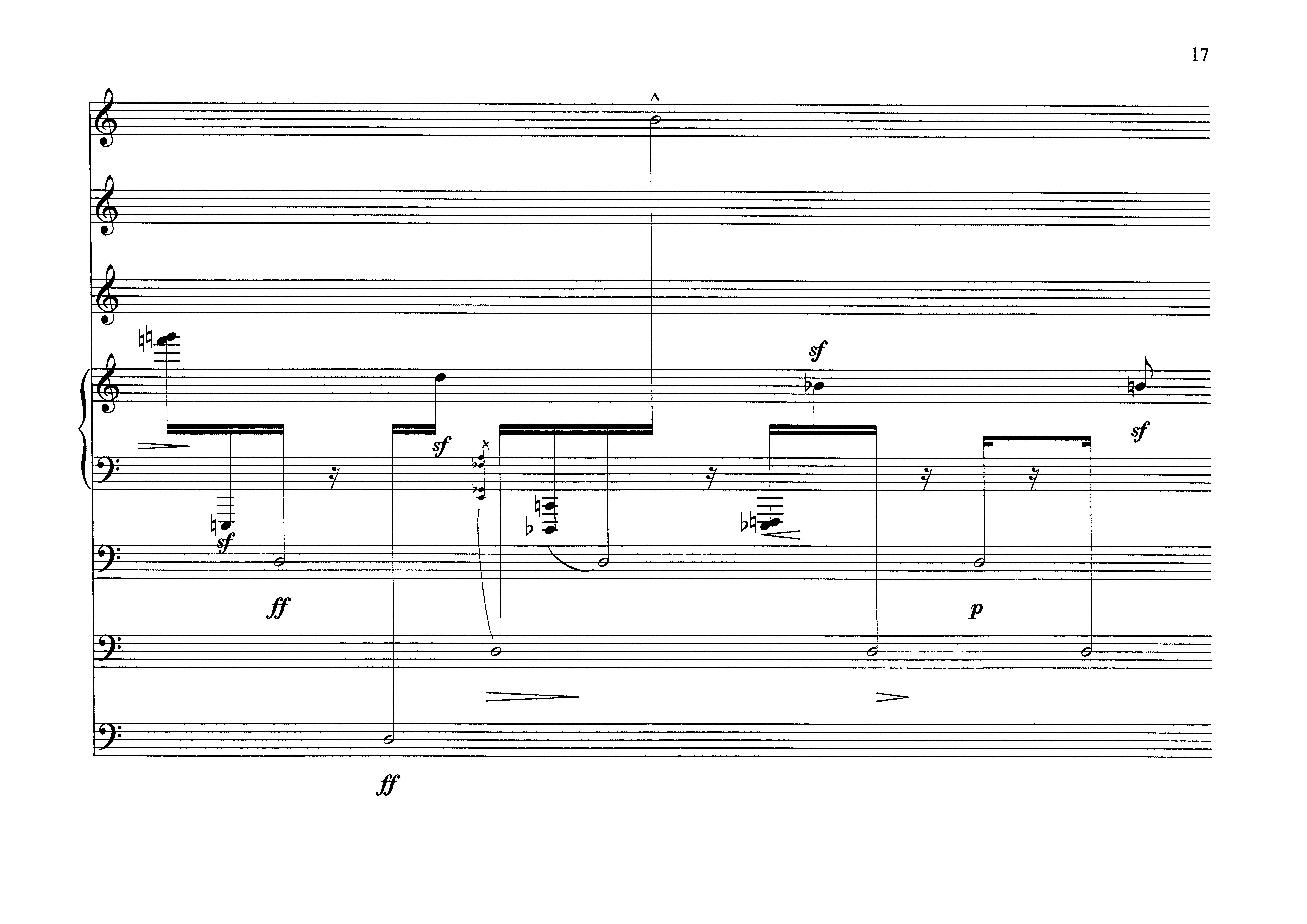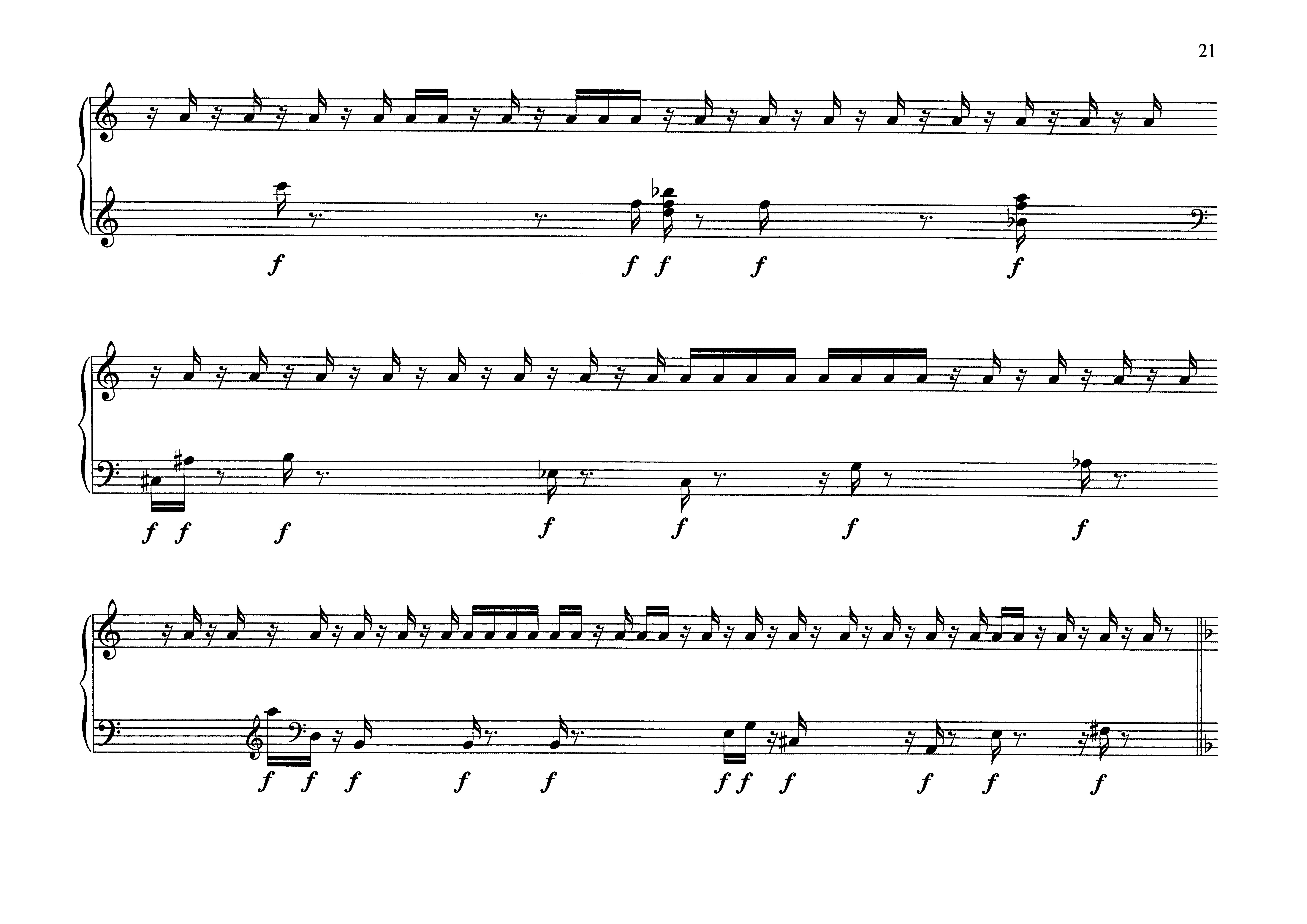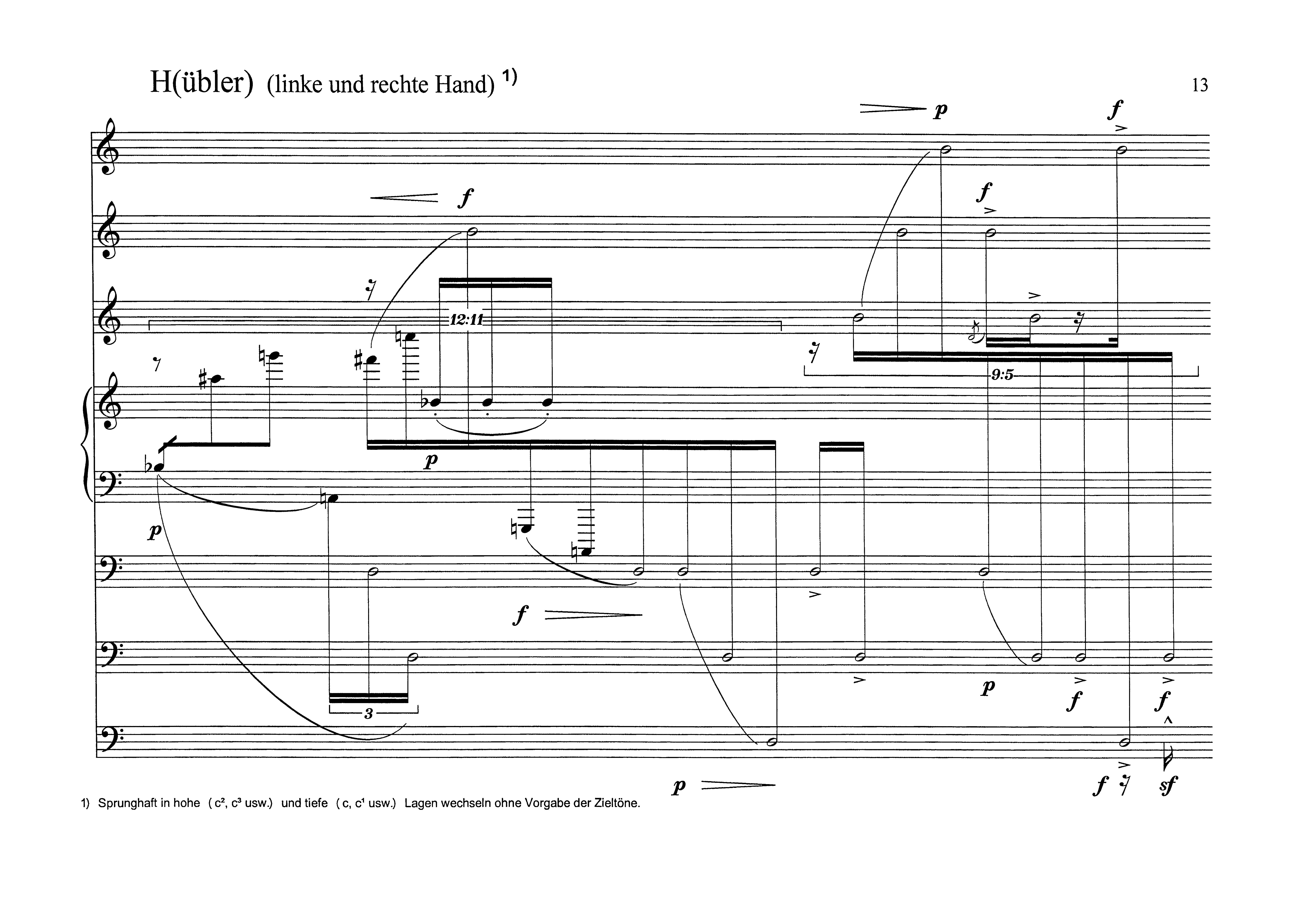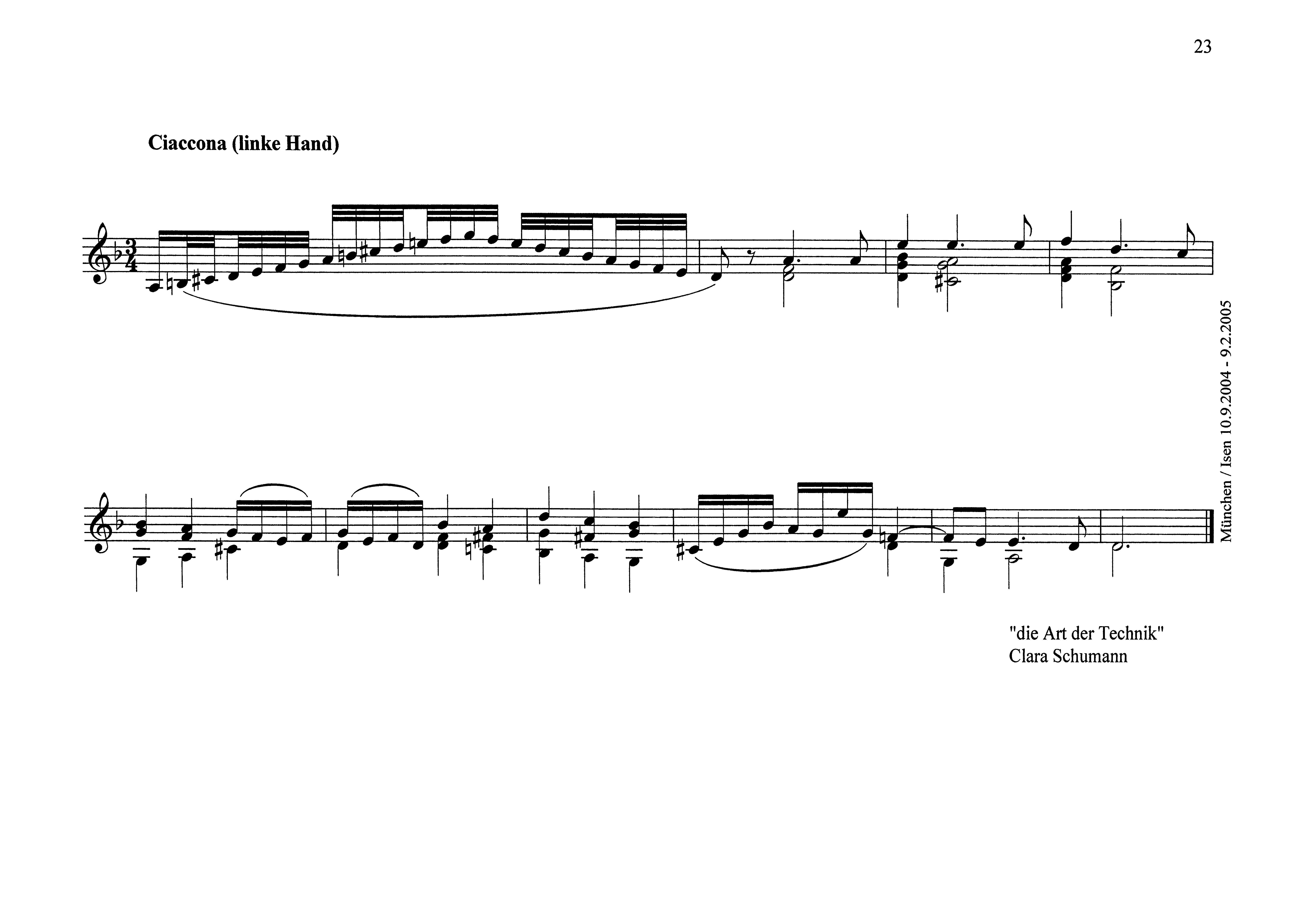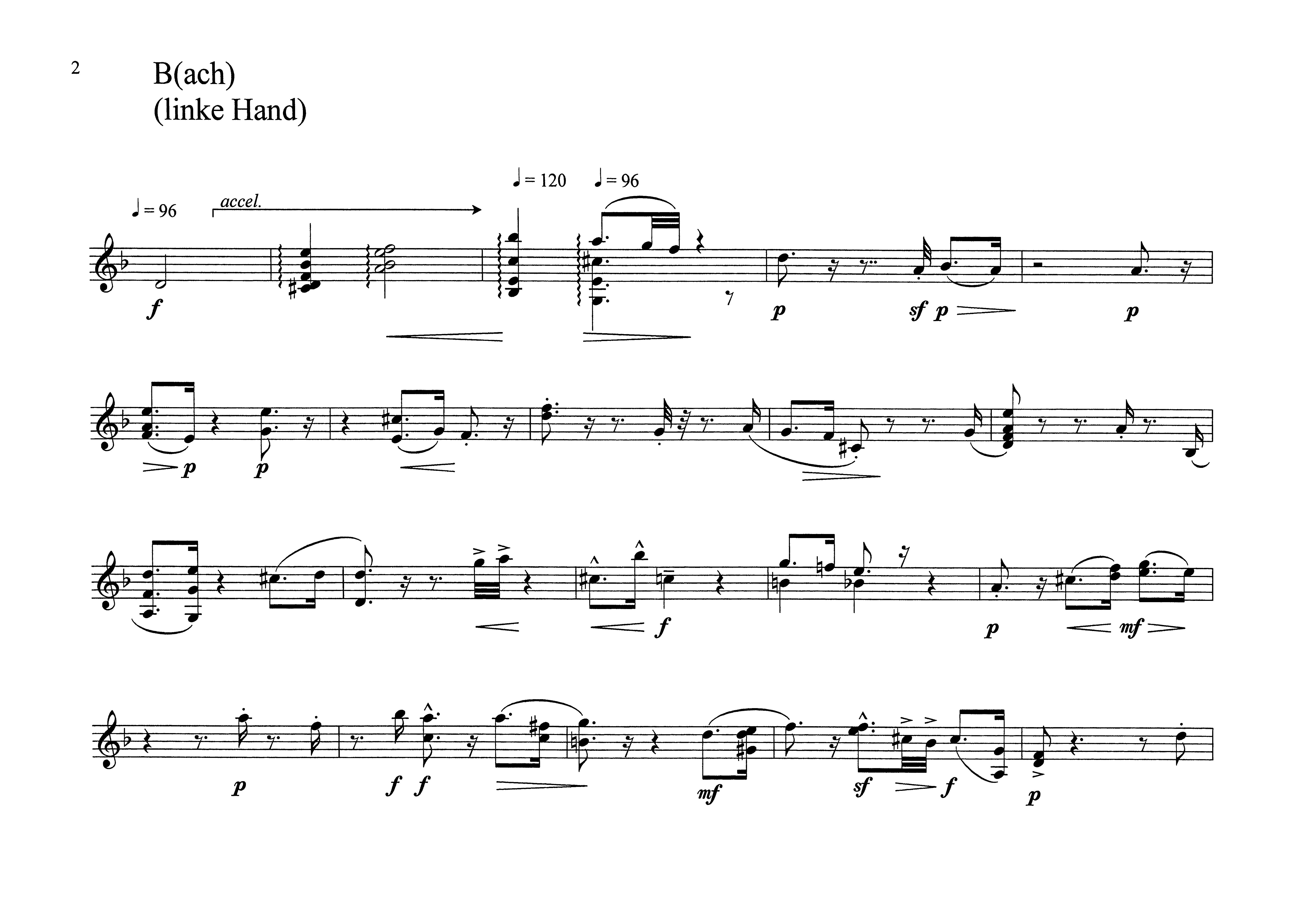 Wenn man so will, wird innerhalb dieser Komposition Musikgeschichte buchstabiert. Die Chaconne aus der d-moll Violinsonate von Johann Sebastian Bach ordnet sich dem Willen unterschiedlicher Stile unter. ln dieser Einfärbung etabliert sich eher ein groteskes denn ein verarbeitungstechnisches Phänomen. Diese Akzentuierung auf das Komische unterstützt der Moment des Jandl sprechenden Pianisten."