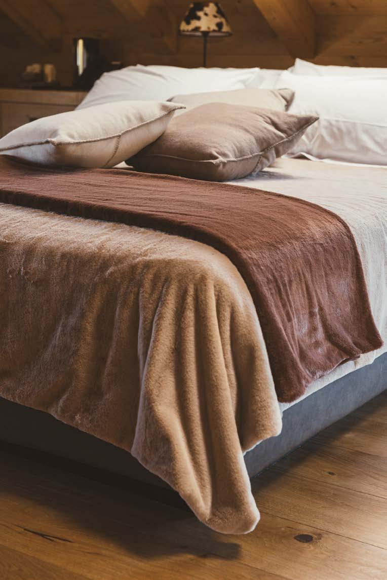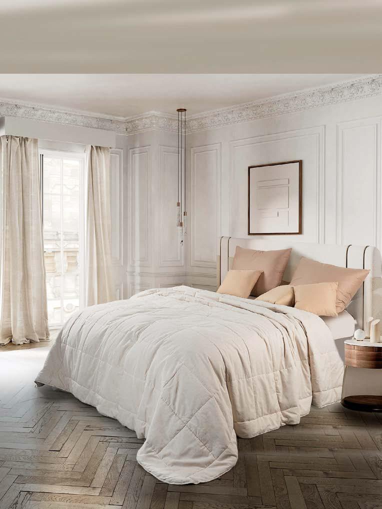 InSof, in!ne, propone una soluzione multistagionale particolarmente versatile e disponibile in varie grammature, con una sof!ce falda composta per il 75% da !bre rigenerate, che unisce leggerezza, sostenibilità e cura artigianale.