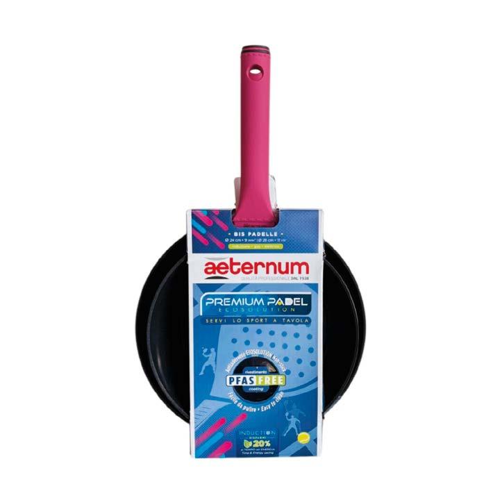 Sul fronte dell’assortimento, la gamma offre essibilità d’acquisto con set che combinano padelle di diversi diametri (20, 24 e 28 cm) con o senza casseruola da 16 cm, in abbinamento con il manico staccabile. Il manico è disponibile anche come accessorio singolo, con codice.