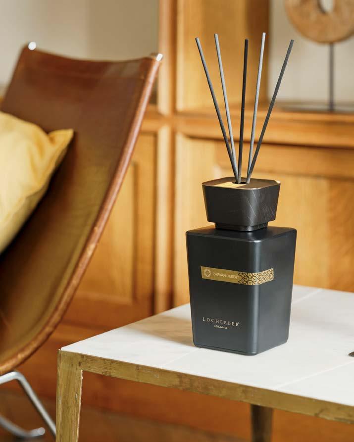 Ultima nata in casa Locherber, l’esclusiva fragranza Zafran Desert è un invito a viaggiare nella magia nel deserto mediorientale. Rosa tea, lampone e gelsomino, ma anche zafferano, patchouli e legno di agar, fino a un fondo avvolgente di oud, ambra grigia e sandalo. Un viaggio olfattivo opulento, reso ancora più prezioso dall’estetica dei diffusori: in vetro nero opaco rifinito a mano da maestri vetrai italiani, con etichetta decorata e tappo in legno con placca in oro galvanico. Fanno parte della Skyline Collection, la linea di diffusori slanciati (da 250 ml a 2500 ml) ispirata ai grattacieli. L’essenza è disponibile anche come candela e Eau de parfum intense.