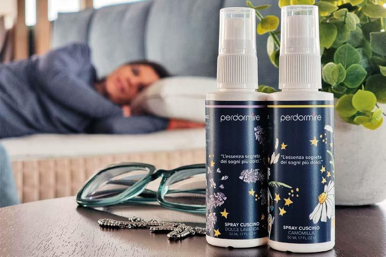 Con i nuovi Pillow Spray, Perdormire trasforma il rito della buonanotte in una coccola olfattiva. Le fragranze Camomilla e Lavanda, da vaporizzare sul cuscino mezz’ora prima di coricarsi, diffondono lentamente note rilassanti che favoriscono distensione e quiete. Un equilibrio tra funzione e benessere che accompagna il sonno con discreta eleganza.