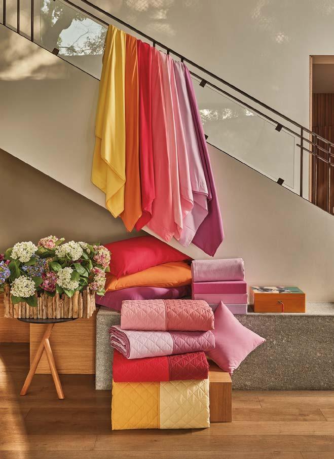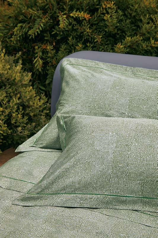 Fazzini trasforma la stanza da letto in un prato fiorito con Nara, la collezione tessile in raso di cotone 300TC che richiama la poesia dei paraventi giapponesi. Delicate composizioni di fiori, vegetazione e piccoli uccelli prendono forma grazie alla stampa digitale, mentre il percalle tinta unita bilancia il decoro. La collezione comprende lenzuola, parure copripiumino, quilt e copriletto.