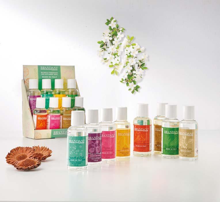 Cotone e seta, muschio bianco, fresia e gelsomino, sandalo, arancia... Brandani propone tantissime essenze, da quelle più romantiche a quelle più speziate, nei pratici flaconi di ricarica, da 100 ml. Per creare atmosfere sempre diverse, giocando con i diffusori d’ambiente.
