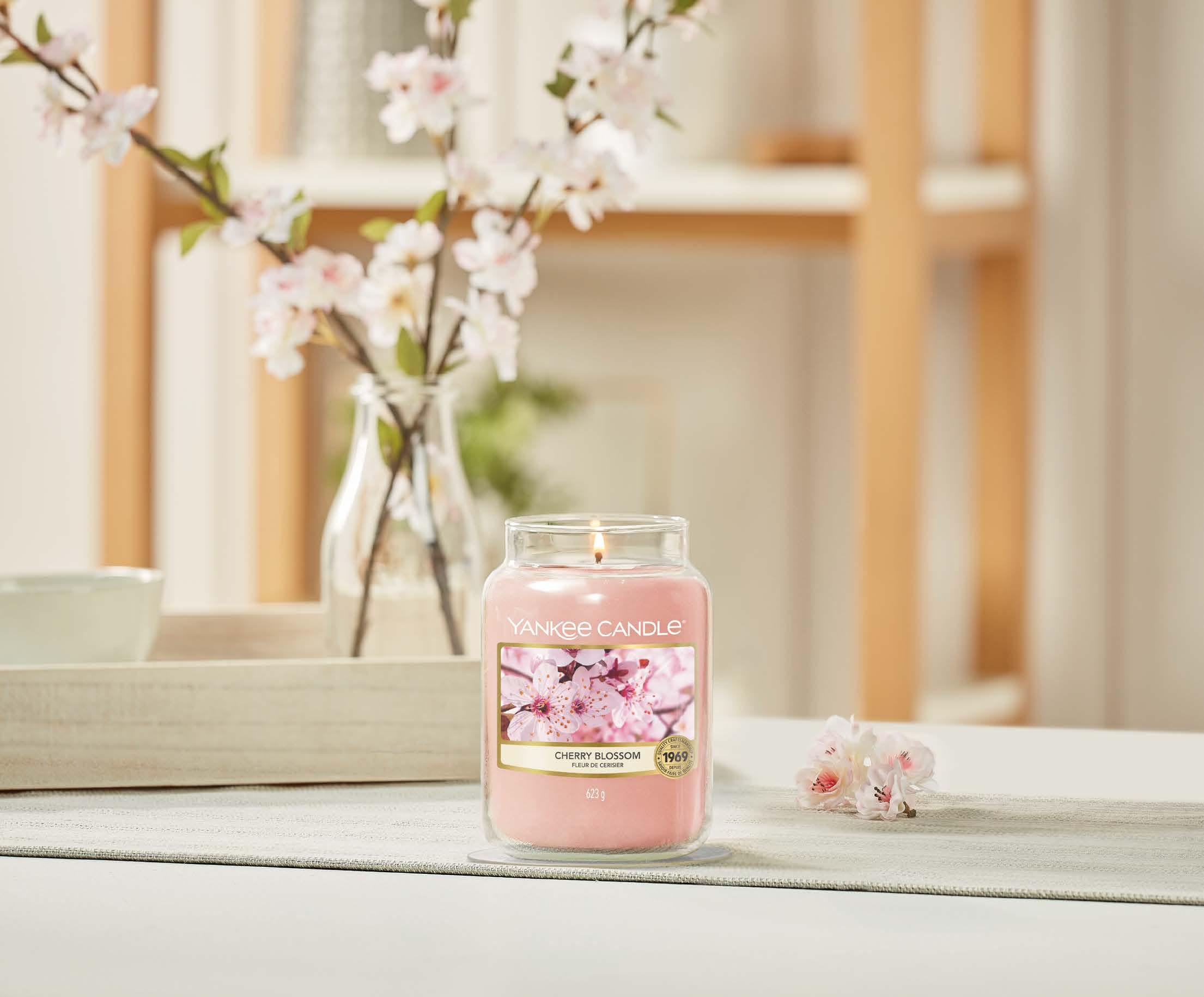 Cherry Blossom di Yankee Candle celebra la poesia dei primi fiori primaverili con note di ciliegio che si intrecciano a rosa, fiore di ciliegio e gelsomino, su un fondo vellutato di muschio e sandalo. ll risultato è una fragranza equilibrata e sofisticata, perfetta per creare un’atmosfera intima e romantica.