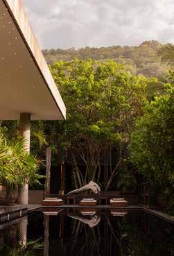 La arquitectura dialoga con la selva y cada espacio parece diseñado para bajar el volumen del mundo exterior. Ideal para quienes buscan bienestar con estética y una espiritualidad sin estridencias.