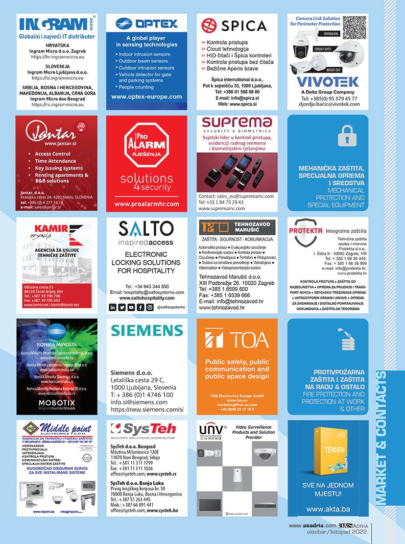 Magazine a&s Adria is a leading media in the field of security, smart homes and building automation for the countries of Southeast Europe: Bosnia and Herzegovina, Montenegro, Croatia, Kosovo, Northern Macedonia, Slovenia and Serbia. It is part of the media network of the Messe Frankfurt Ltd. Taiwan Branch, which offers asmag.com platform and a&s magazines published in five languages. The total annual circulation is approximately 515,000 copies.