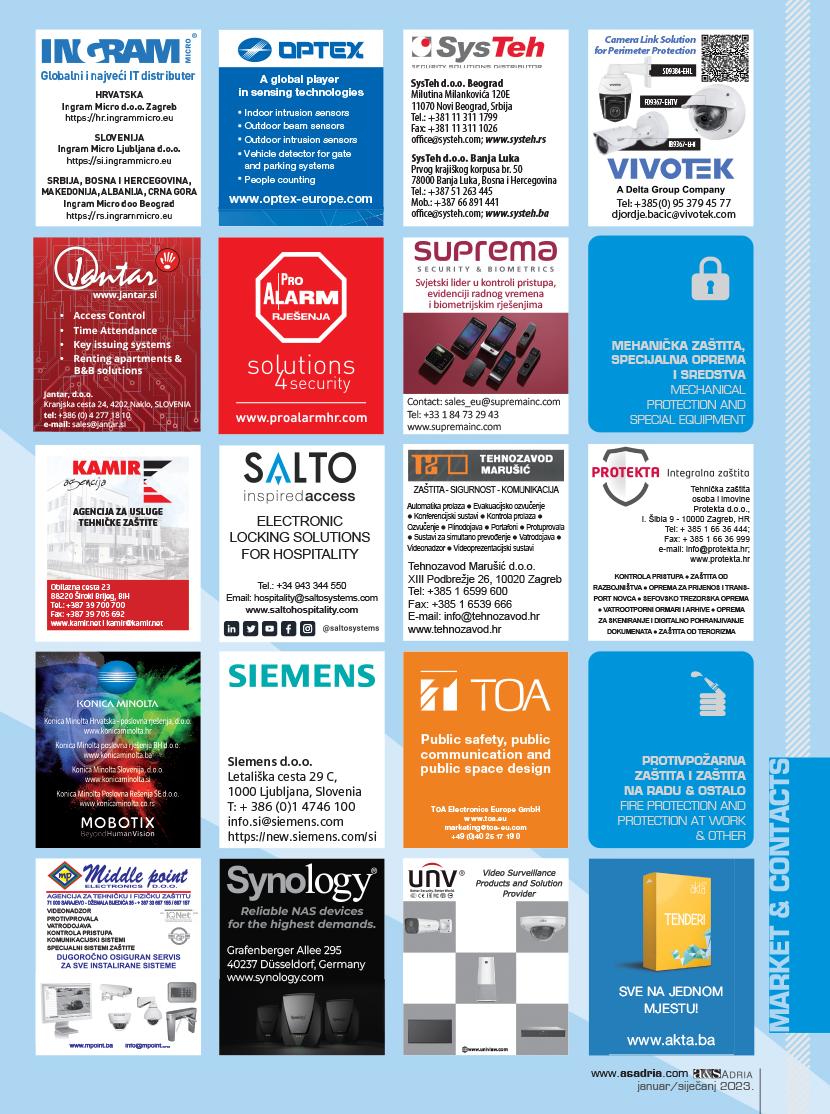 Magazine a&s Adria is a leading media in the field of security, smart homes and building automation for the countries of Southeast Europe: Bosnia and Herzegovina, Montenegro, Croatia, Kosovo, Northern Macedonia, Slovenia and Serbia. It is part of the media network of the Messe Frankfurt Ltd. Taiwan Branch, which offers asmag.com platform and a&s magazines published in five languages. The total annual circulation is approximately 515,000 copies.