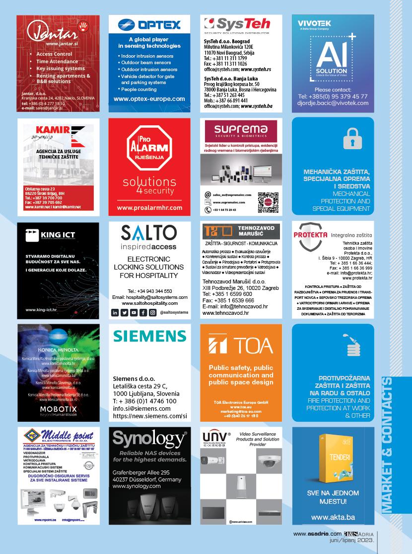 Magazine a&s Adria is a leading media in the field of security, smart homes and building automation for the countries of Southeast Europe: Bosnia and Herzegovina, Montenegro, Croatia, Kosovo, Northern Macedonia, Slovenia and Serbia. It is part of the media network of the Messe Frankfurt Ltd. Taiwan Branch, which offers asmag.com platform and a&s magazines published in five languages. The total annual circulation is approximately 515,000 copies.